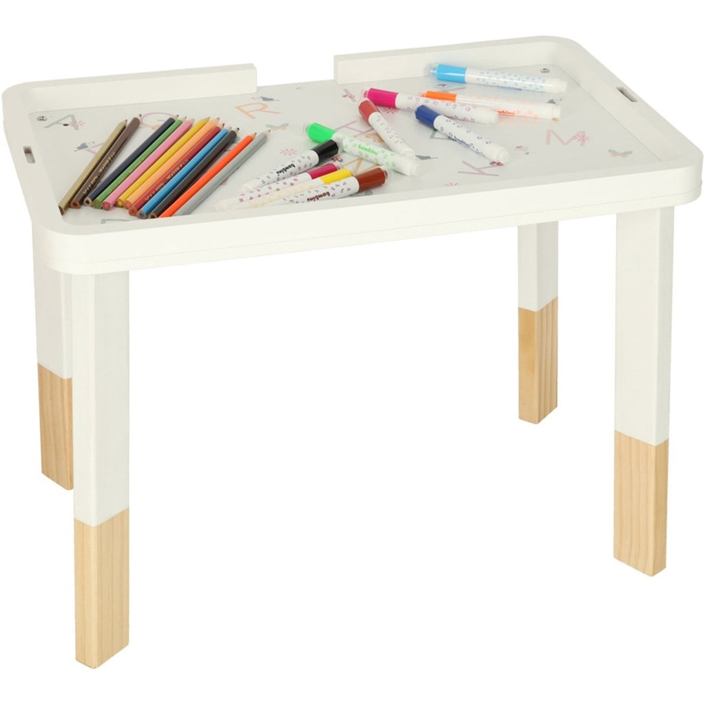 • Afneembaar bovenblad – Het tafelblad (47,5 x 29,5 cm) kan worden verwijderd, waardoor de tafel wordt omgevormd tot een creatieve werkplek voor tekenen of spelen met kinetisch zand.
