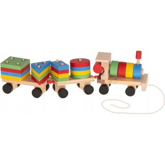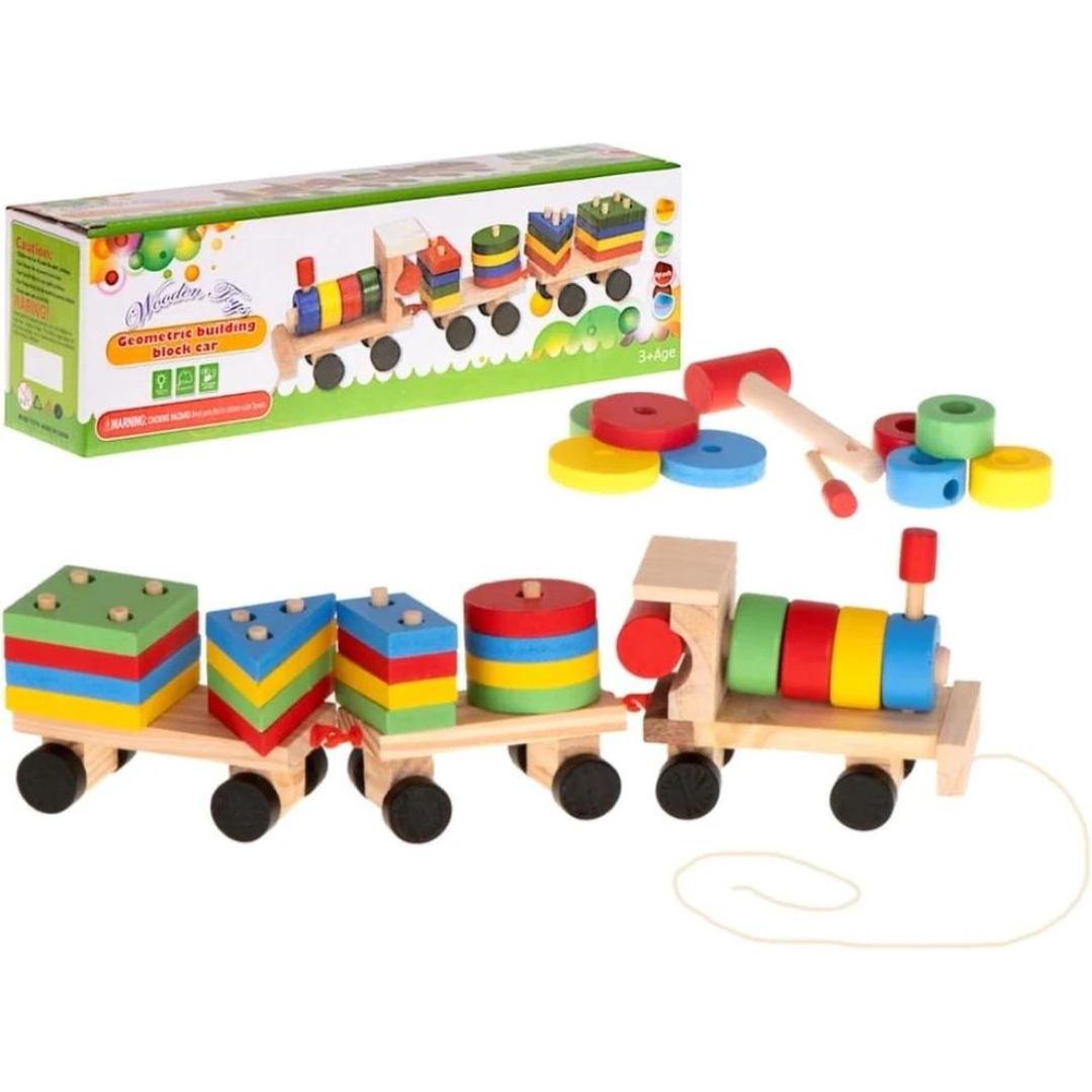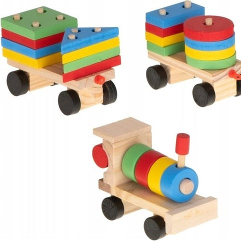 Een sensationele trein geheel van hout met kleurrijke blokken. Het speelgoed helpt de handigheid en handvaardigheid van een kind te verbeteren. Het helpt bij het aanleren van logisch denken en geduld, en beïnvloedt de fantasie en creativiteit van het kind.
