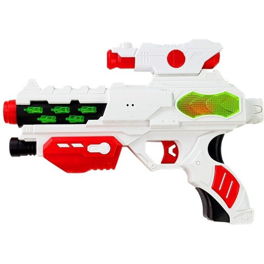 We presenteren een verbazingwekkende set ruimtewapens, de perfecte rekwisiet om te vechten tegen een geduchte vijand van een verre planeet. Dit unieke, originele wapen heeft kosmische geluiden en lichtjes, die alle kinderen zeker zullen aanmoedigen om te spelen.
