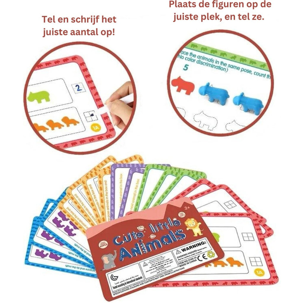• De taak van de peuter is om het juiste aantal figuren te plaatsen en ze te tellen.
