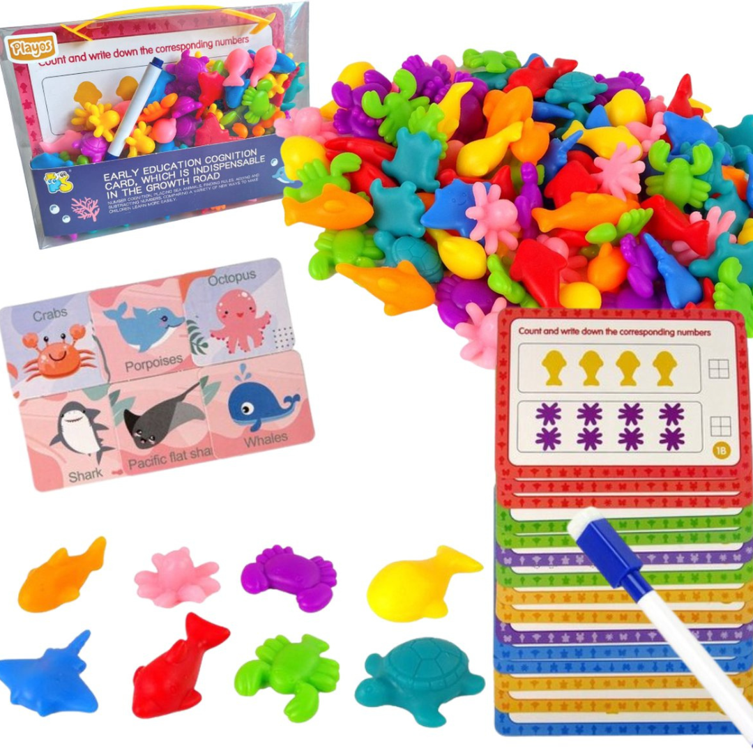 Voorbeelden van taken zijn: een patroon zoeken en er een passend dier op plaatsen, de getekende zeedieren tellen en op de daarvoor bestemde plek schrijven, etc. Naast het leren tellen kunnen de figuren ook gebruikt worden om kleuren te leren. Het speelgoed groeit mee met het kind, omdat het kan worden gebruikt om taal te leren in de latere adolescentiejaren. De set is een geweldig alternatief voor de standaard manier van lesgeven: spelenderwijs leren!
