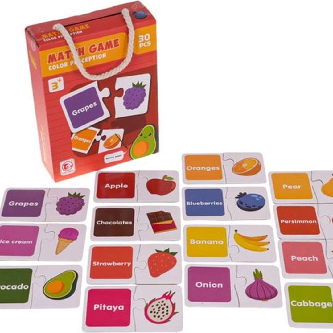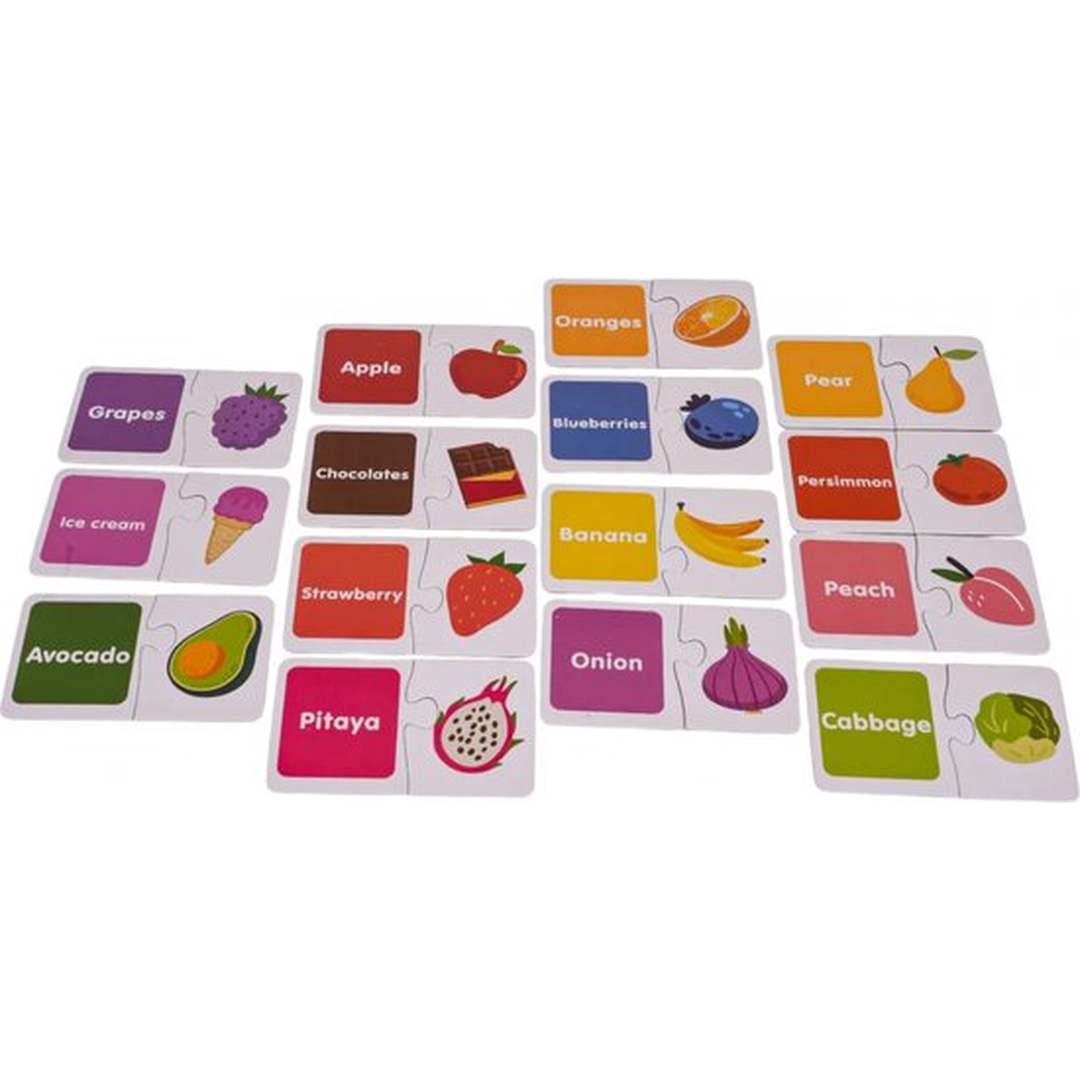 Educatief spel om Engels te leren voor kinderen vanaf 3 jaar. Het spel bestaat uit 30 puzzels, waardoor het kind fruit in het Engels leert benoemen en kleuren leert herkennen. Het spel traint ook de oog-handcoördinatie, ontwikkelt observatie en concentratie en leert vormen bij elkaar passen.