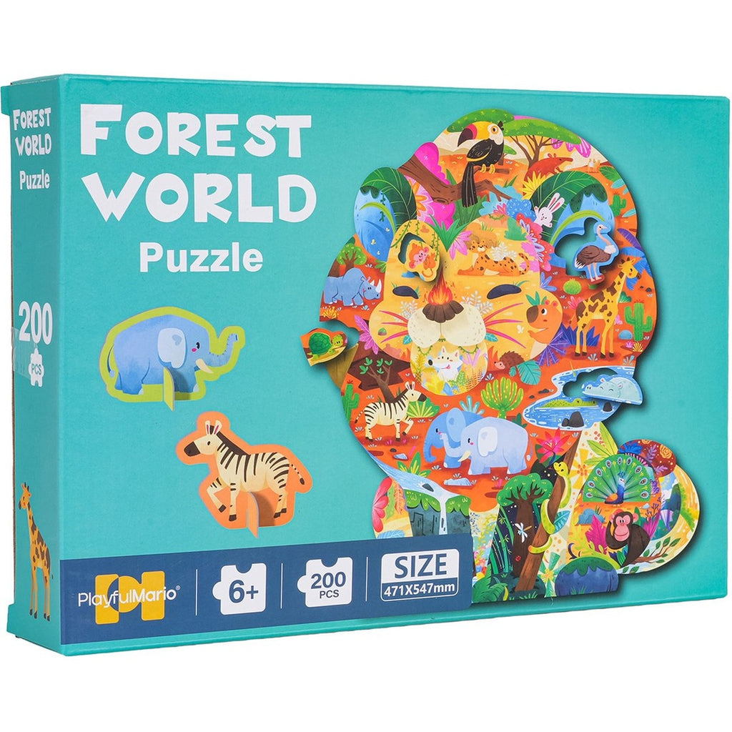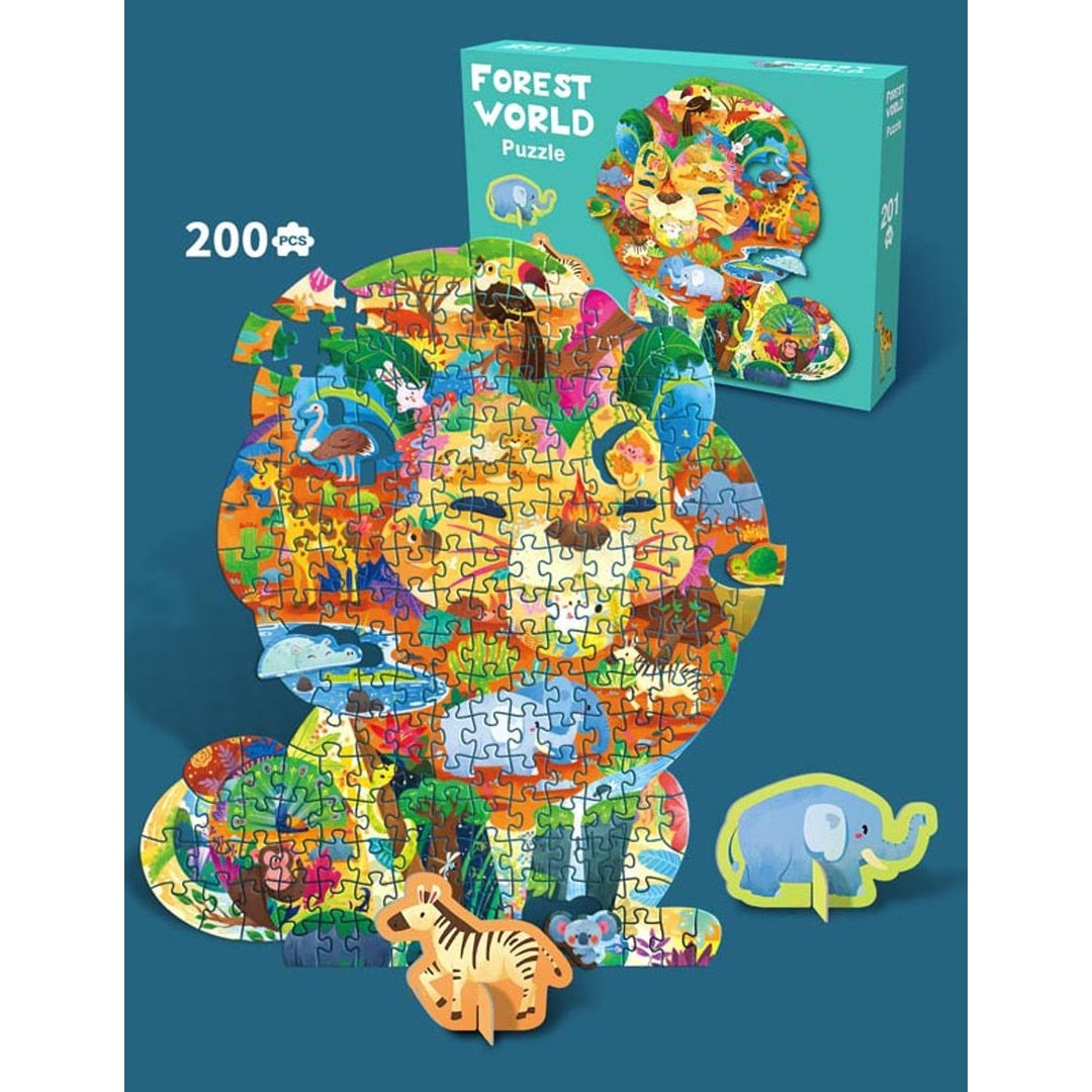 Ontdek de safari wereld met deze kleurrijke en educatieve puzzel! Met maar liefst 200 stukjes vormt deze set na het leggen een prachtige afbeelding van een koe met diverse safari dieren (57,4 cm x 44 cm). De puzzel bevat ook twee speciale stukken met steun (een zebra en een olifant), die je bijvoorbeeld op een bureau kunt plaatsen voor extra decoratie en plezier. Puzzelen is niet alleen leuk, maar helpt ook bij het ontwikkelen van concentratie, logisch denken en visueel geheugen.