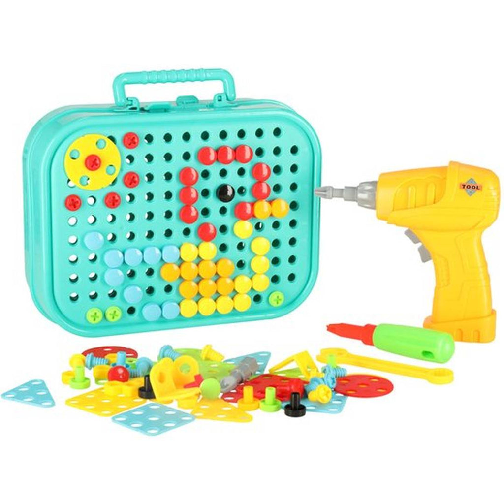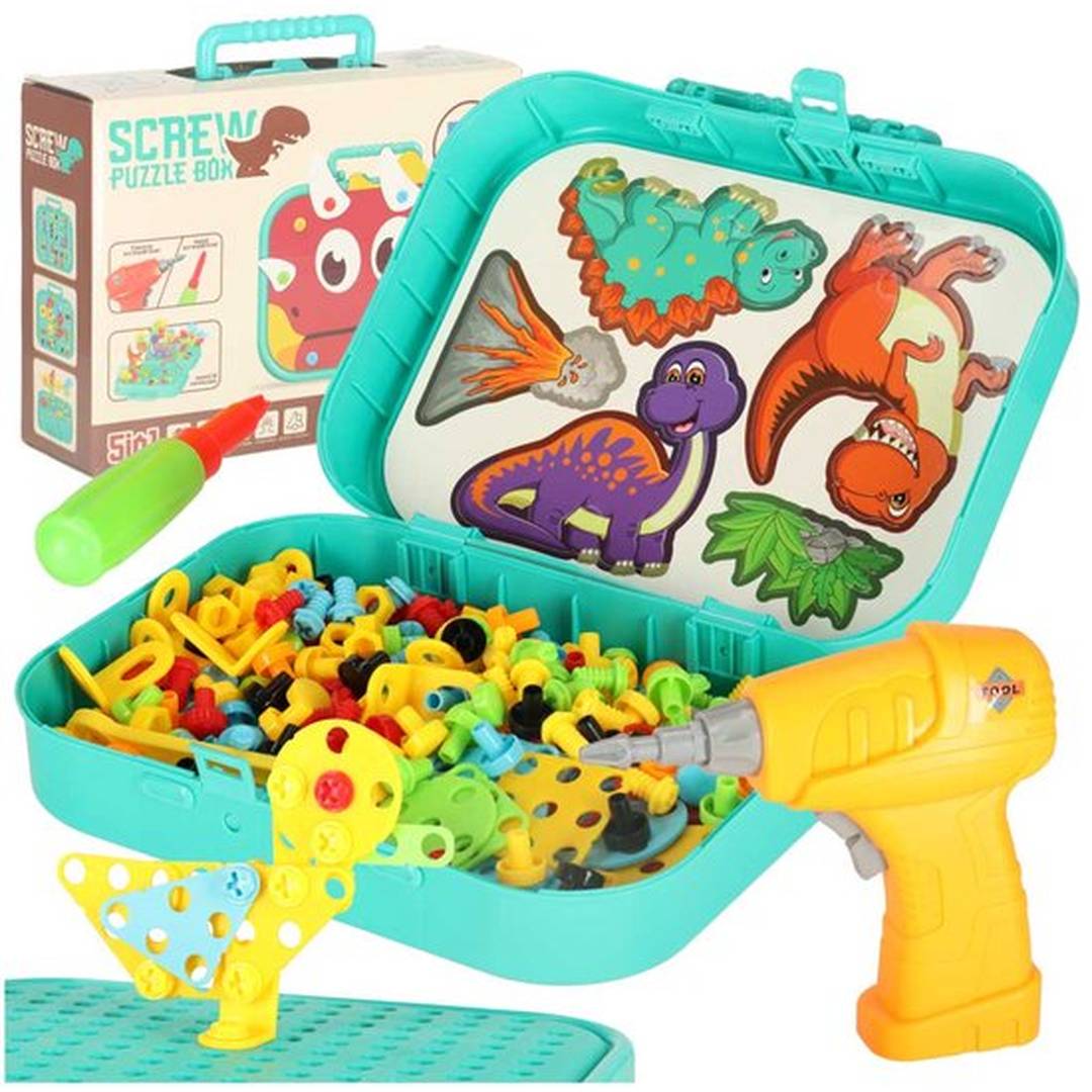 Dit kleurrijke consctructiespeelgoed zal elk kind betoveren! Deze set staat niet alleen garant voor eindeloos speelplezier, maar zorgt ook voor een algemene ontwikkeling van vaardigheden voor de allerkleinsten. Kinderen ontwikkelen urenlang fijne motorische vaardigheden, logisch denken en creativiteit. De praktische kunststof koffer kan niet alleen alle onderdelen van de set bevatten, maar verandert ook in een speelbord. Met de vele blokken, bits en schroeven zijn de mogelijkheden om unieke meesterwerken te maken bijna eindeloos. Bovendien kunnen kinderen met kartonnen dinosaurussen indrukwekkende 3D-constructies maken. De set wordt geleverd met een plastic schroevendraaier en een boormachine voor nog meer speelplezier. Bouwblokken zijn een droom voor elke kleine bouwer en dinosaurusliefhebber.