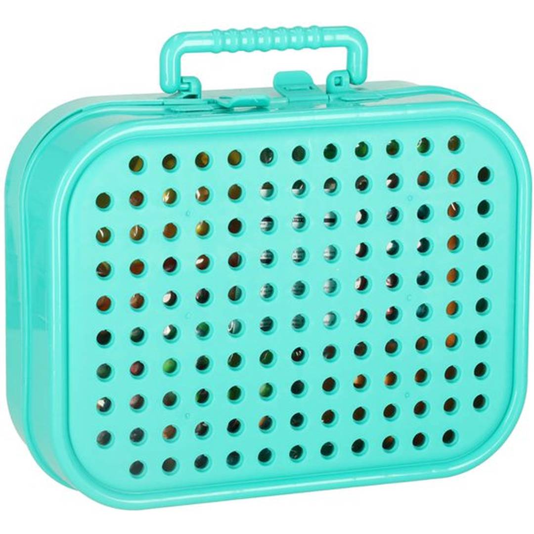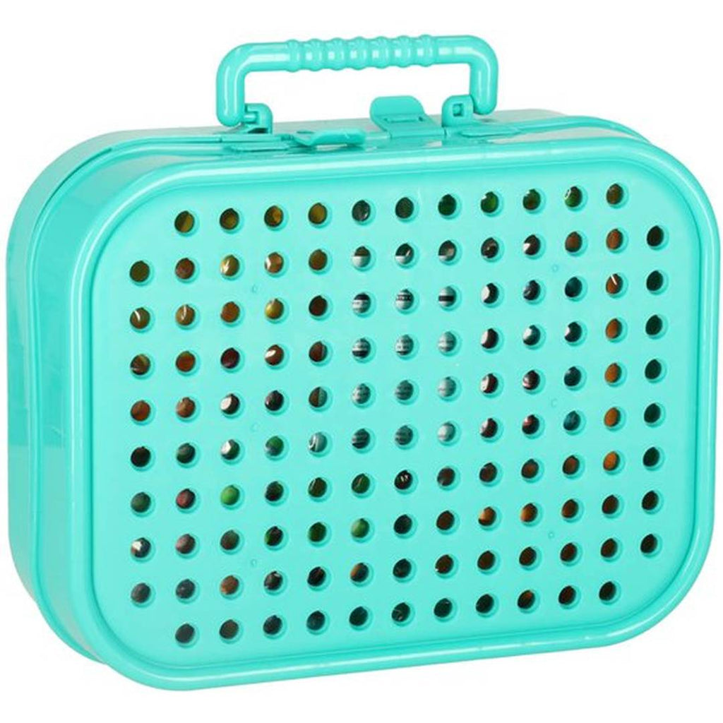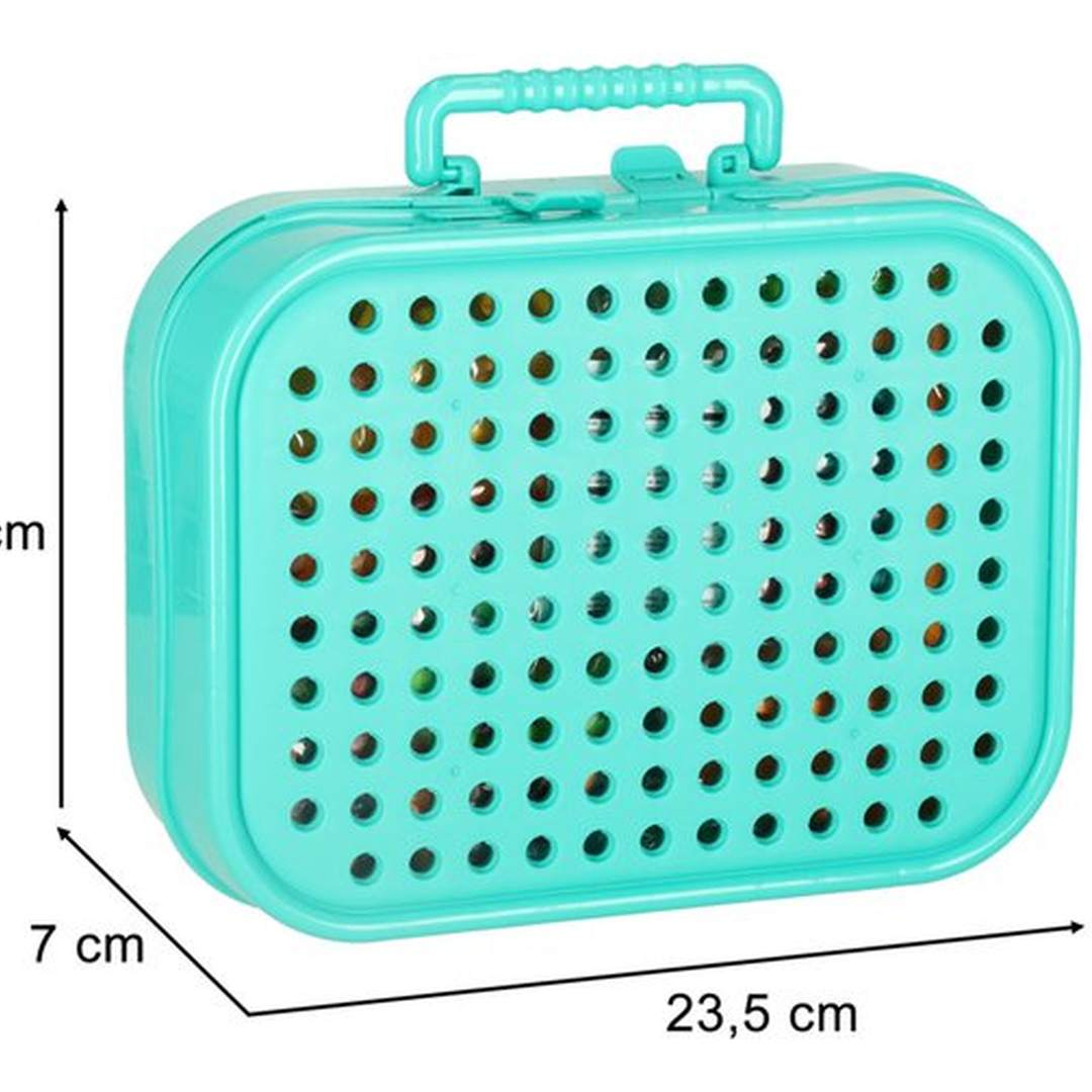 Afmetingen kunststof koffer: 23,5 cm x 18 cm x 7 cm
