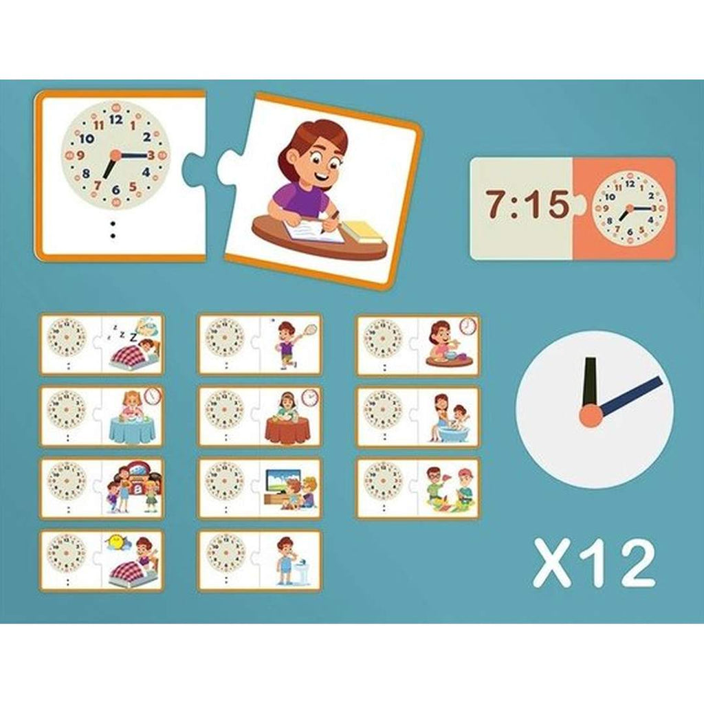 • dubbelzijdige puzzel met klok, tijd en activiteiten