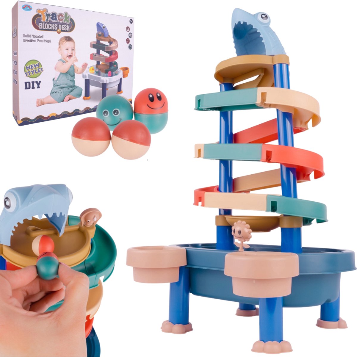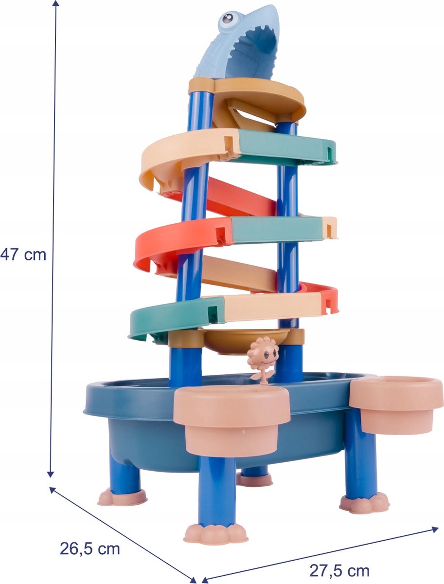 Ontdek het ultieme speelplezier met deze Ballenbaan en Water Speeltafel – een kleurrijk en veelzijdig speelgoed dat kinderen vanaf 3 jaar urenlang vermaak biedt! Deze set bestaat uit een stevige tafel met een waterglijbaan en een haaienkop, inclusief vier kleurrijke ballen en een kleurrijk ontwerp dat perfect is voor spelen in zand, water of binnen.