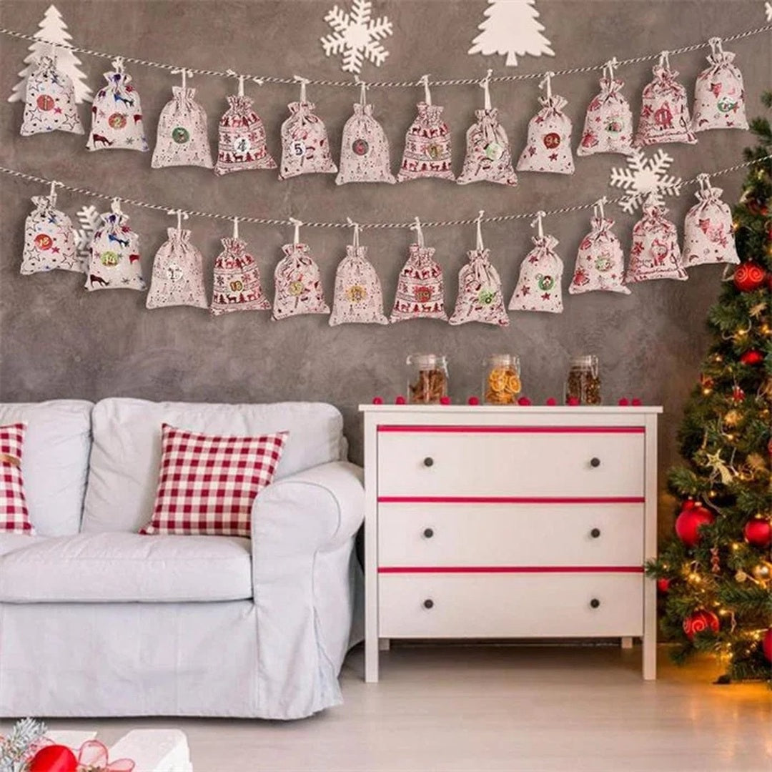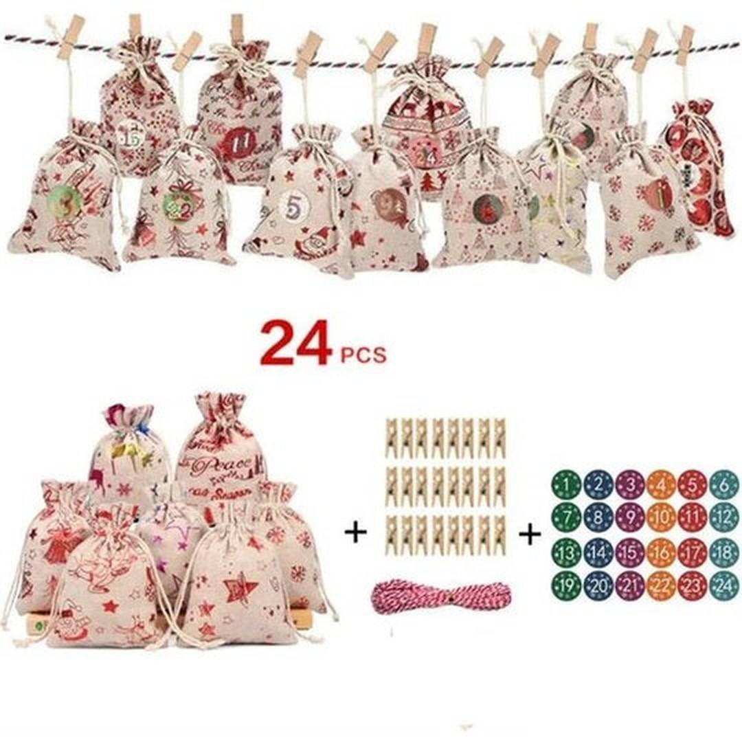 De adventsgeschenkzakjes zijn voorzien van leuke patronen, koord, stickers en knijpers. Je kunt de adventzakken aan de muur, kerstboom, open haard, raam, deur, en nog veel meer plekken. Hang ze op om je huis te versieren en een dromerig gevoel te geven!
