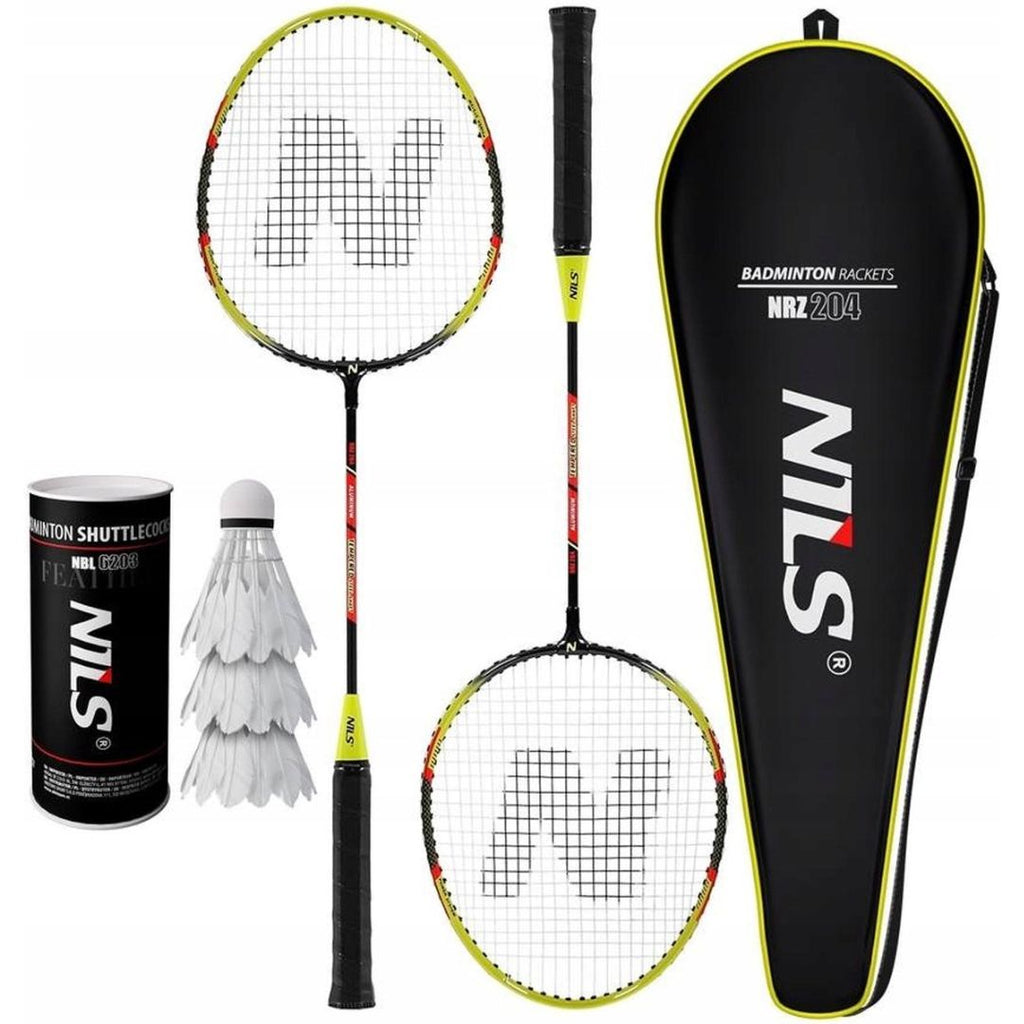 Badmintonset - 2 Rackets - Oranje / Groen - in Hoes