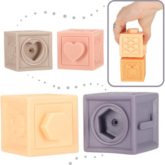 • Zintuiglijke ontwikkeling - de verschillende texturen en bobbels op de blokken zorgen voor een uitstekende stimulatie van de tastzin.
