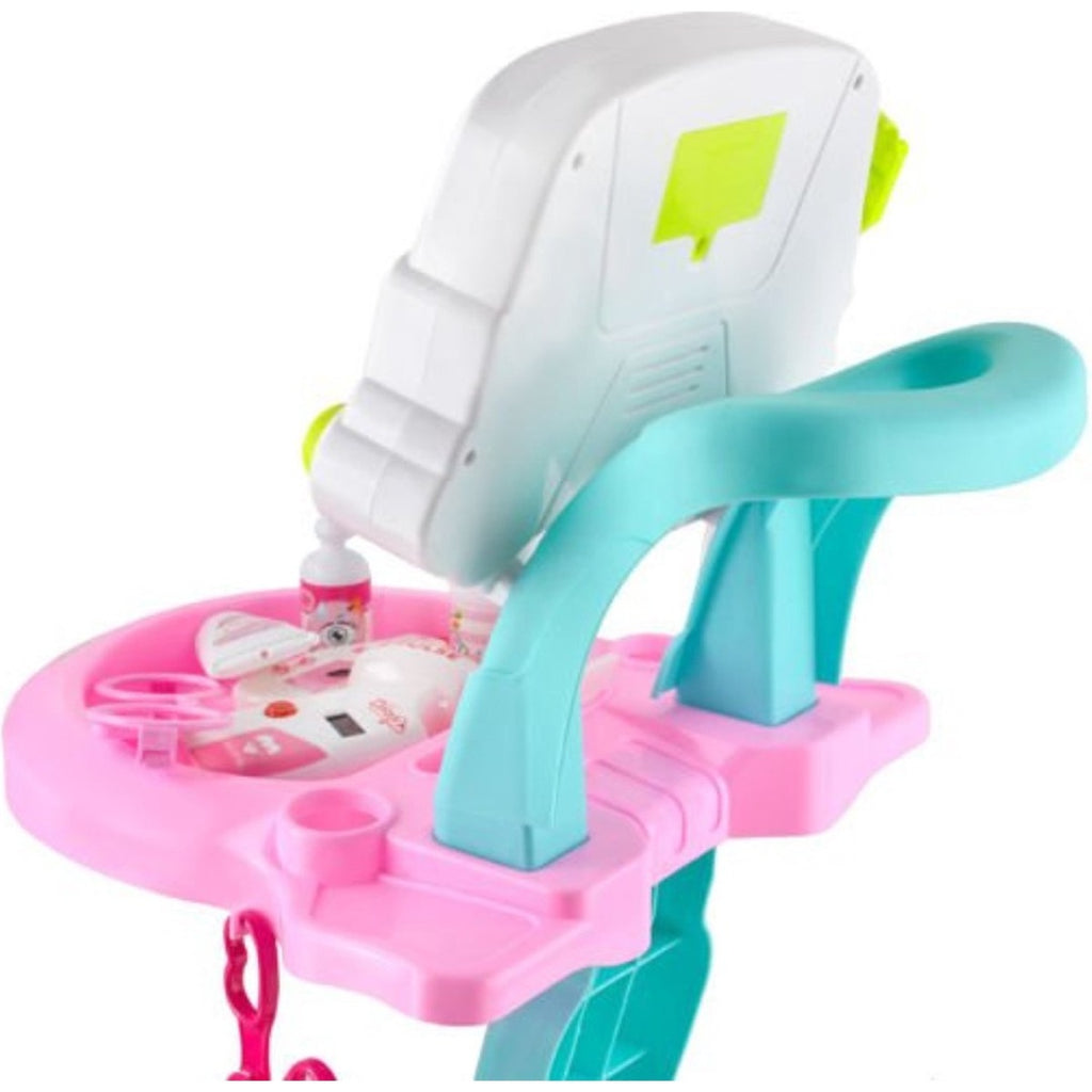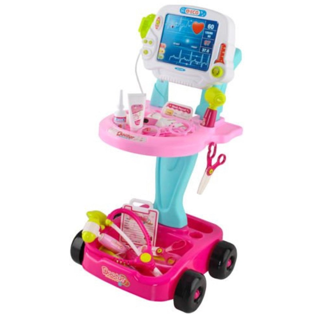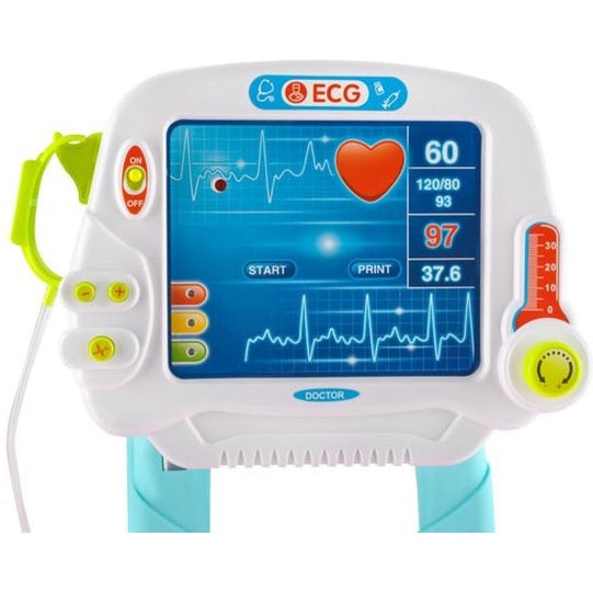 De set bestaat uit 18 elementen, die in een handige en lichte trolley op 4 wielen zijn geplaatst. Het aantal onderdelen maakt praktisch gebruik van de set mogelijk. Medische accessoires en een trolley met 2 niveaus met een imitatie van een ECG-scherm en een handvat maken gevarieerd en veelzijdig speelplezier mogelijk. Dankzij de "ride-on" kan het kind het speelgoed probleemloos verplaatsen naar een andere kamer of meenemen naar de tuin of voor een wandeling.