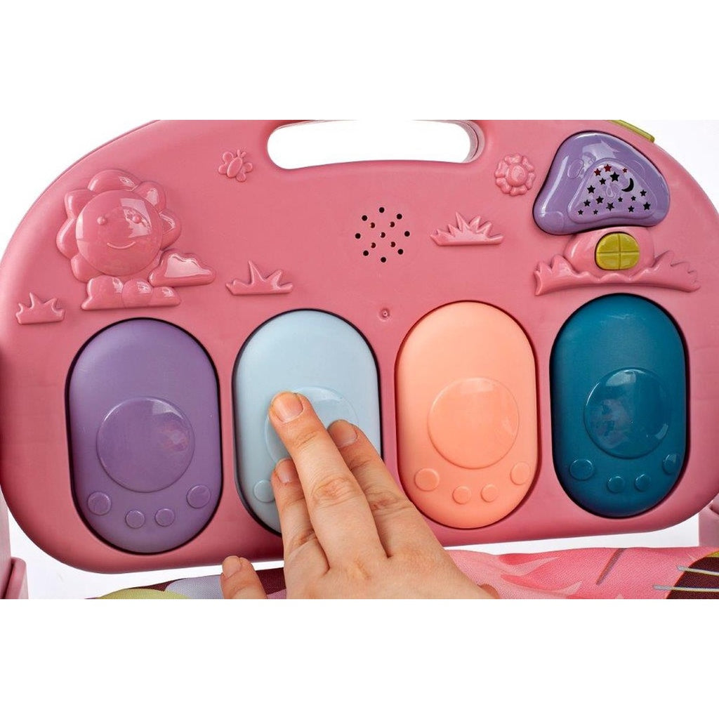 Je baby kan liggend en zittend spelen met deze babygym. Daarnaast oefenen baby's been- en armkracht door te schoppen tegen de piano, terwijl hij het hangende speeltje vastpakt. De baby ontwikkelt veelzijdige vaardigheden en hand-voet coördinatie met de speelmat.