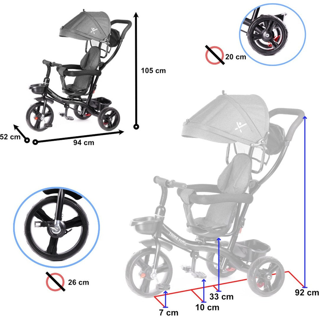 Deze driewieler duwfiets is ontworpen voor zittende kinderen. Dankzij de vele mogelijkheden om verdere elementen te monteren en demonteren, kun je hem gemakkelijk aanpassen aan de leeftijd van je kind en aan je behoeften.