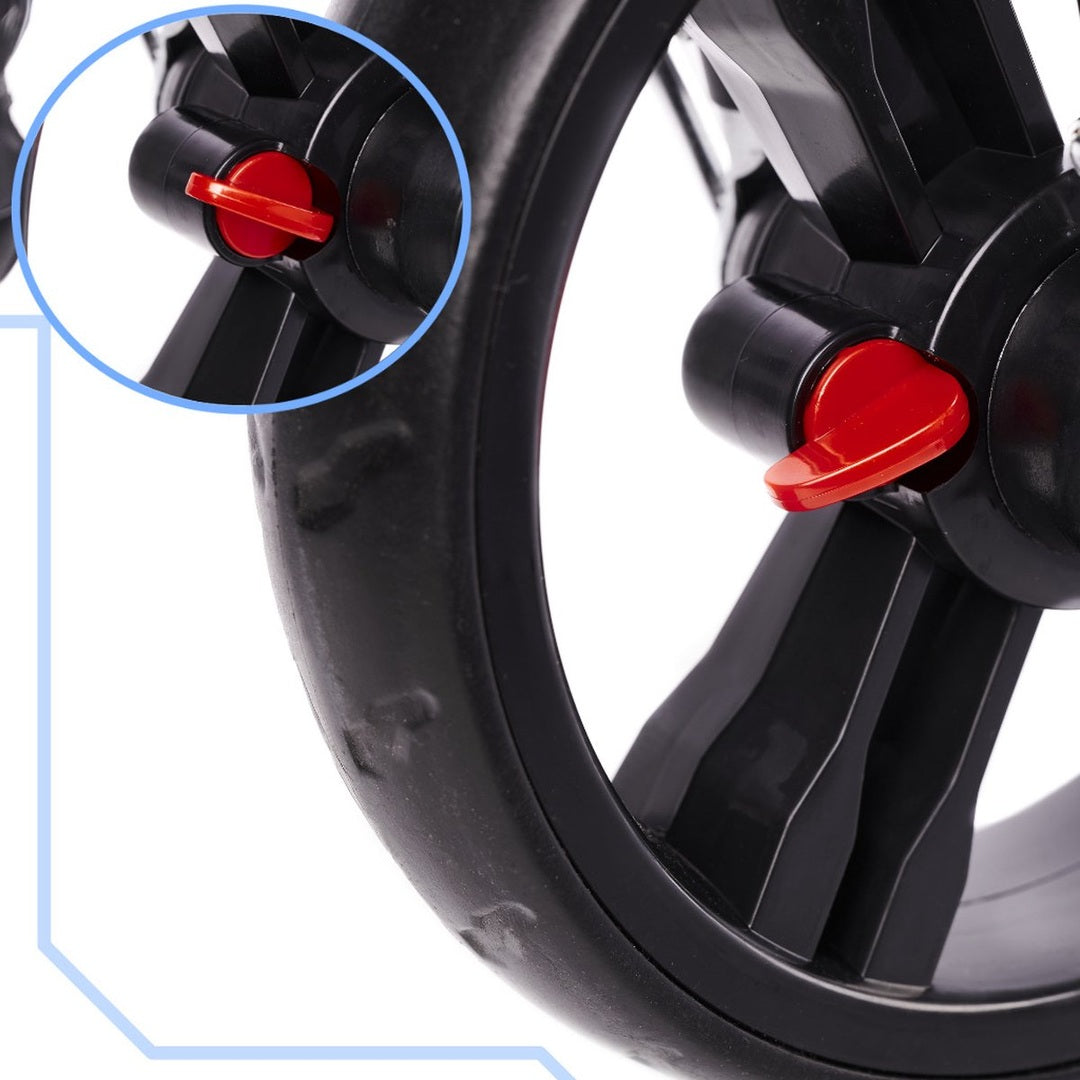 Met het zogenaamde "vrije wiel" kan de peuter het voertuig voortbewegen, of met behulp van een enkele schakelaar kan deze functie worden uitgeschakeld, zodat jij degene bent die de controle heeft.