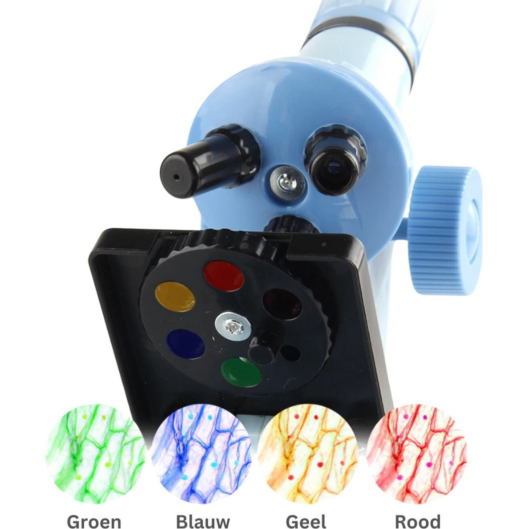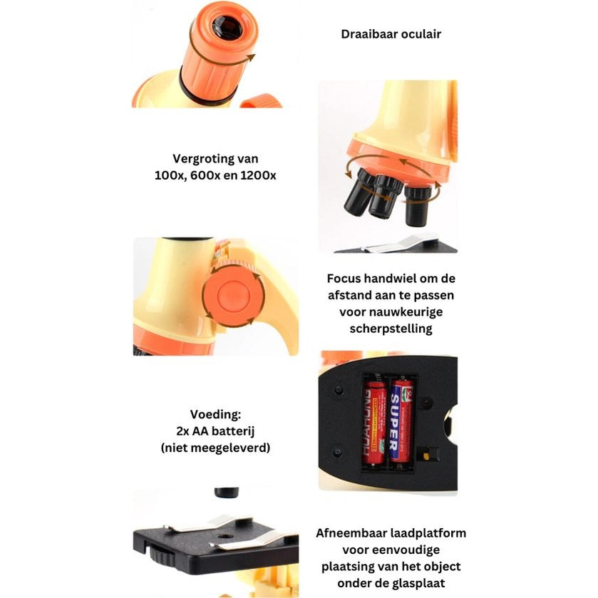Laat je kind kennismaken met de kleinste deeltjes van de wereld. Met deze microscoop kun je tot wel 100x, 600x en 1200x vergroten en inzoomen. Zo wordt jouw kleine een echte wetenschapper!