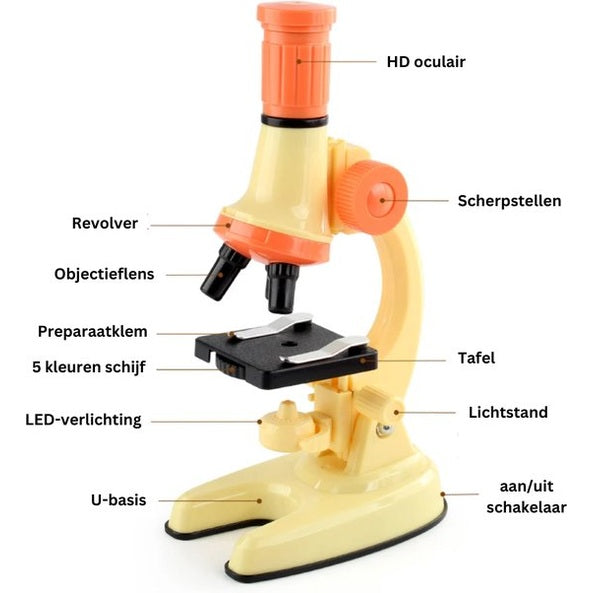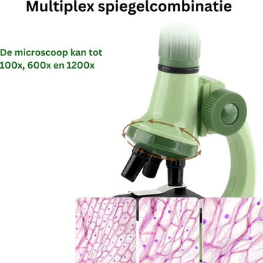 Laat je kind kennismaken met de kleinste deeltjes van de wereld. Met deze microscoop kun je tot wel 100x, 600x en 1200x vergroten en inzoomen. Zo wordt jouw kleine een echte wetenschapper!