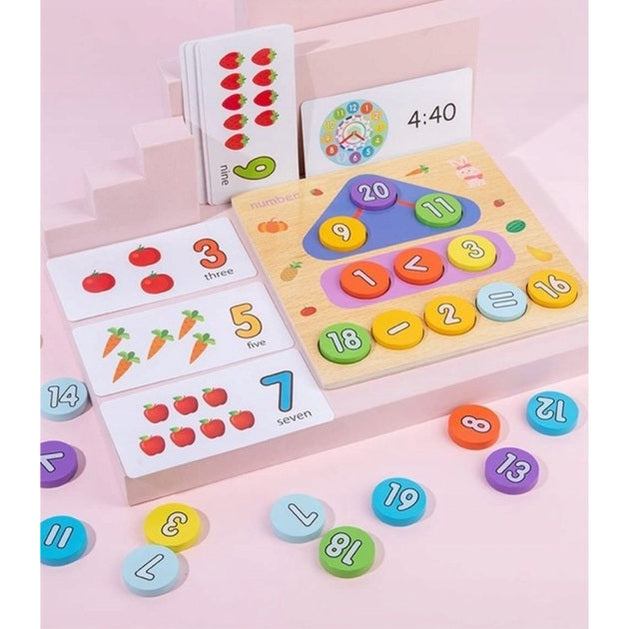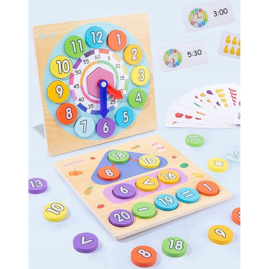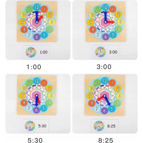 Een educatieve leerklok die uw kind helpt met het leren klokkijken! Maar, met dit spel leert uw kind niet alleen digitale en analoge tijden aflezen, maar leert het ook tellen en rekenen. De ideale basis voor ieder kind dus: waarbij zij leren rekenen, vormen en kleuren onderscheiden, plus en minsommen en de fijne motoriek ontwikkelen.