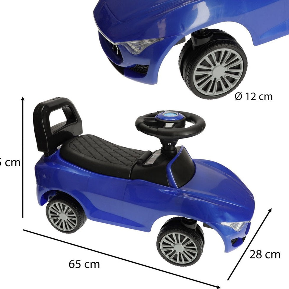 De sportwagen kan door het kind gebruikt worden als eerste voertuig om in te rijden, met een echt stuur en claxon, evenals een zadel met een te openen speelgoedcompartiment. Zeer eenvoudig te monteren en demonteren, en bovendien stabiel en veilig.