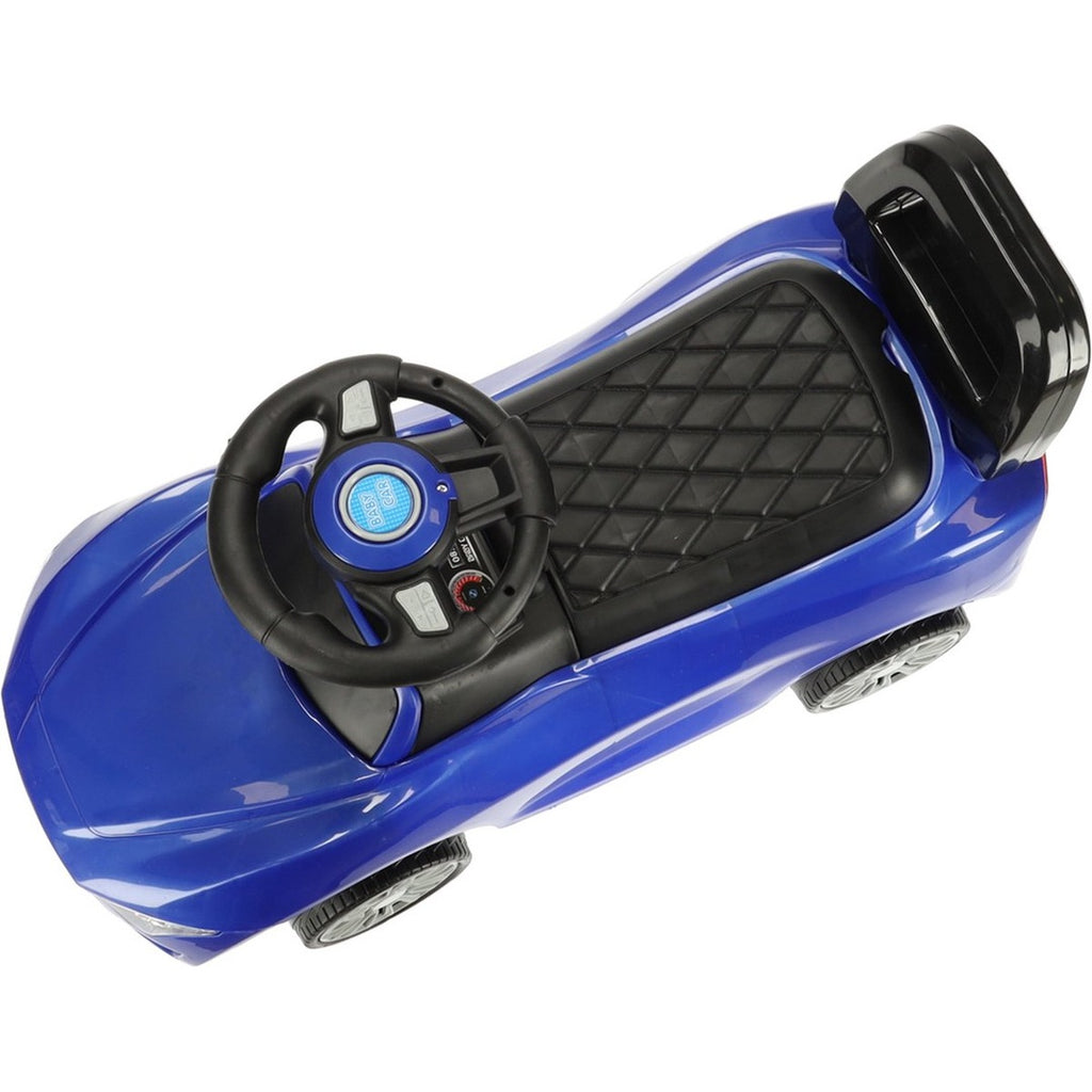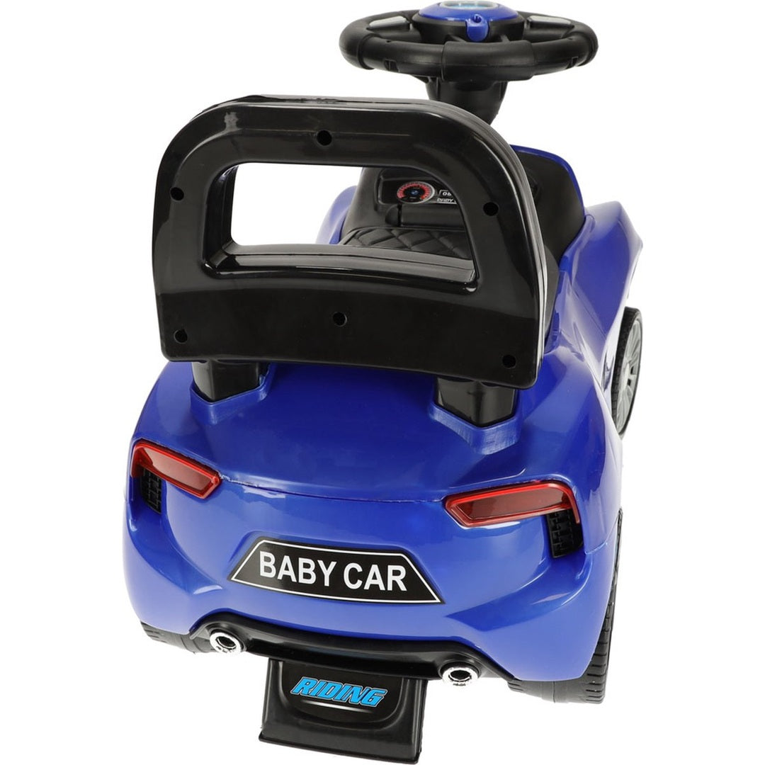 Deze stoere loopauto is gemaakt met aandacht voor de kleinste details en de kwaliteit van de gebruikte materialen. Hij is rijkelijk uitgerust. Het is een "echte" raceauto met een stuur dat is uitgerust met een muziekpaneel en claxon, en een chassis met koprolbescherming.