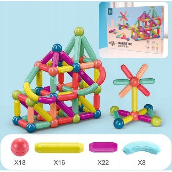 Een set magnetische blokken voor kleine bouwers. De blokken hebben zeer sterke magneten die door kinderen gemaakte bouwwerken vasthouden. Door met blokken te spelen oefenen kinderen creatief denken en handvaardigheid.