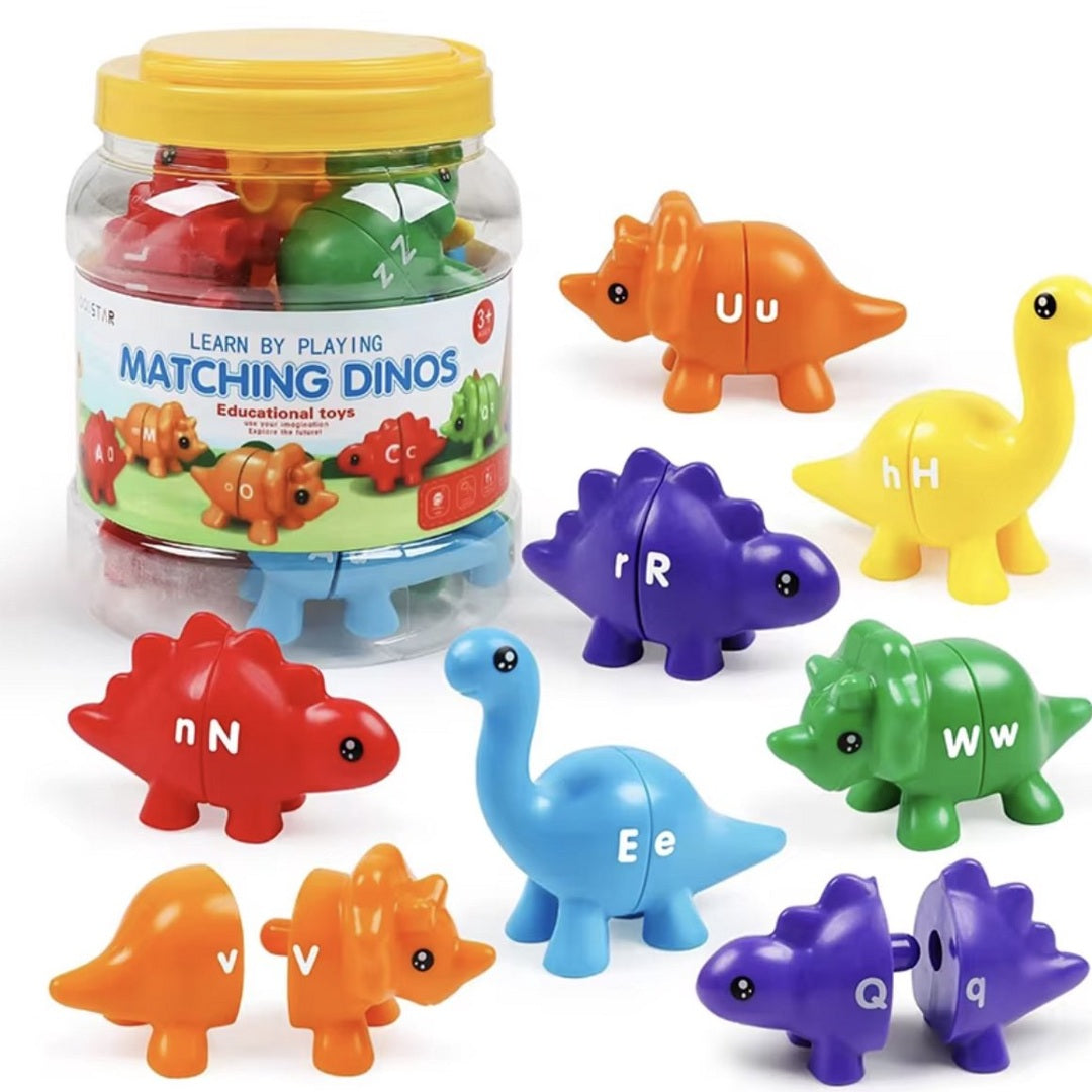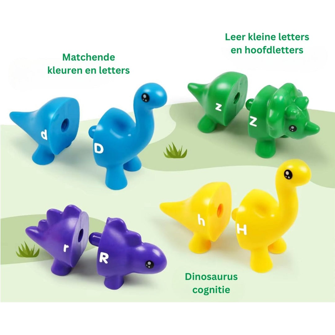 Het educatieve speelgoed om alfabet dino's te combineren is een creatief spel dat uw kind meeneemt naar de prehistorische wereld van de dinosaurussen. Tijdens het spelen kunnen peuters de afzonderlijke onderdelen van de dinosaurus met elkaar verbinden door ze te matchen met kleuren, letters of vormen. Het is niet alleen een geweldige vorm van entertainment, maar ook een ontwikkelend speelgoed dat de handmatige vaardigheden, het observatievermogen en het logisch denkvermogen van het kind stimuleert. Deze set met kleurrijke dinosaurussen is ontworpen om kinderen urenlang speelplezier te bezorgen.