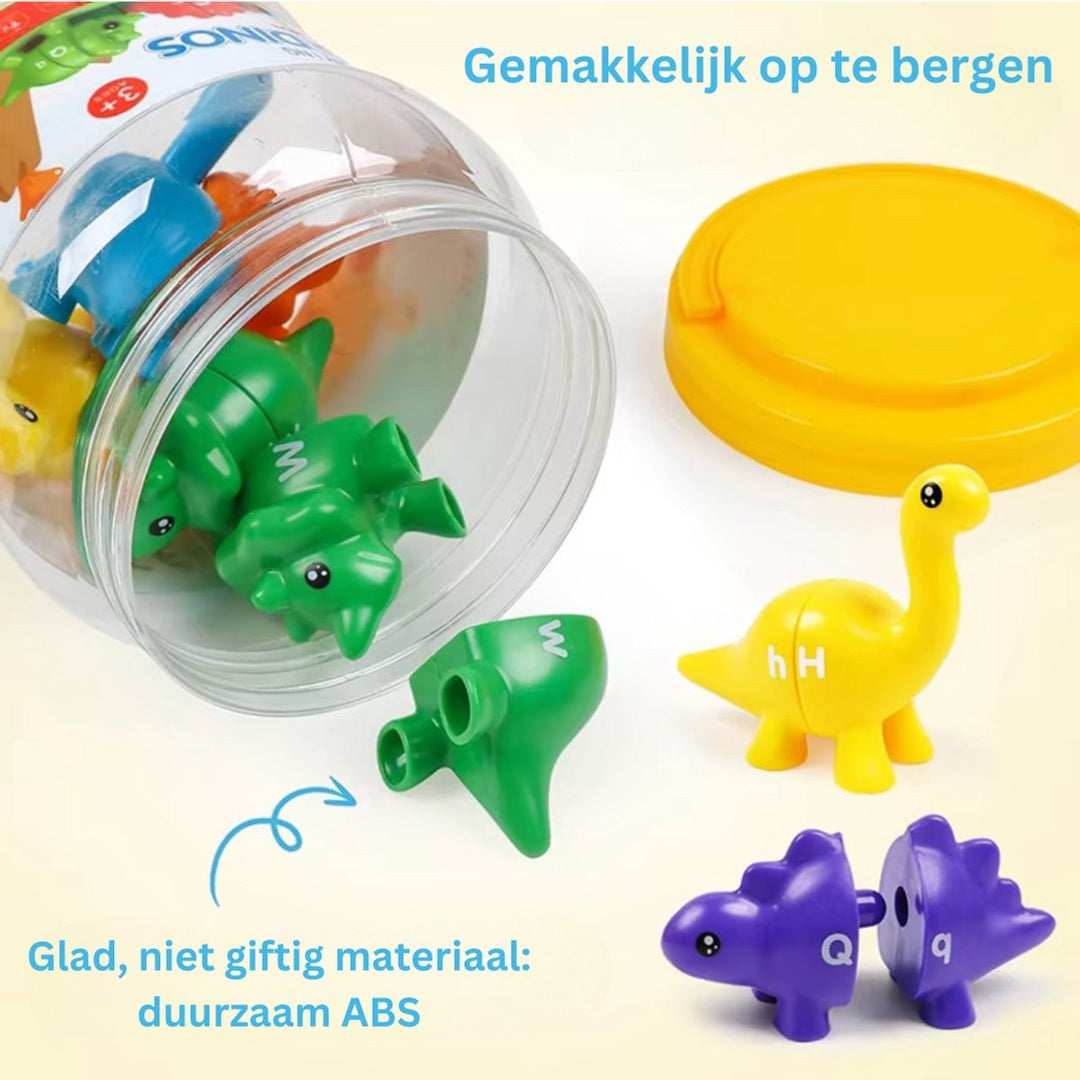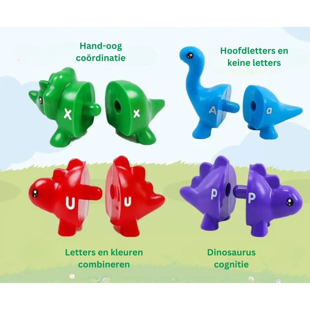• Er staan ​​letters op de dinosaurussen , zodat kinderen spelenderwijs het alfabet kunnen leren door de afzonderlijke onderdelen met elkaar te verbinden