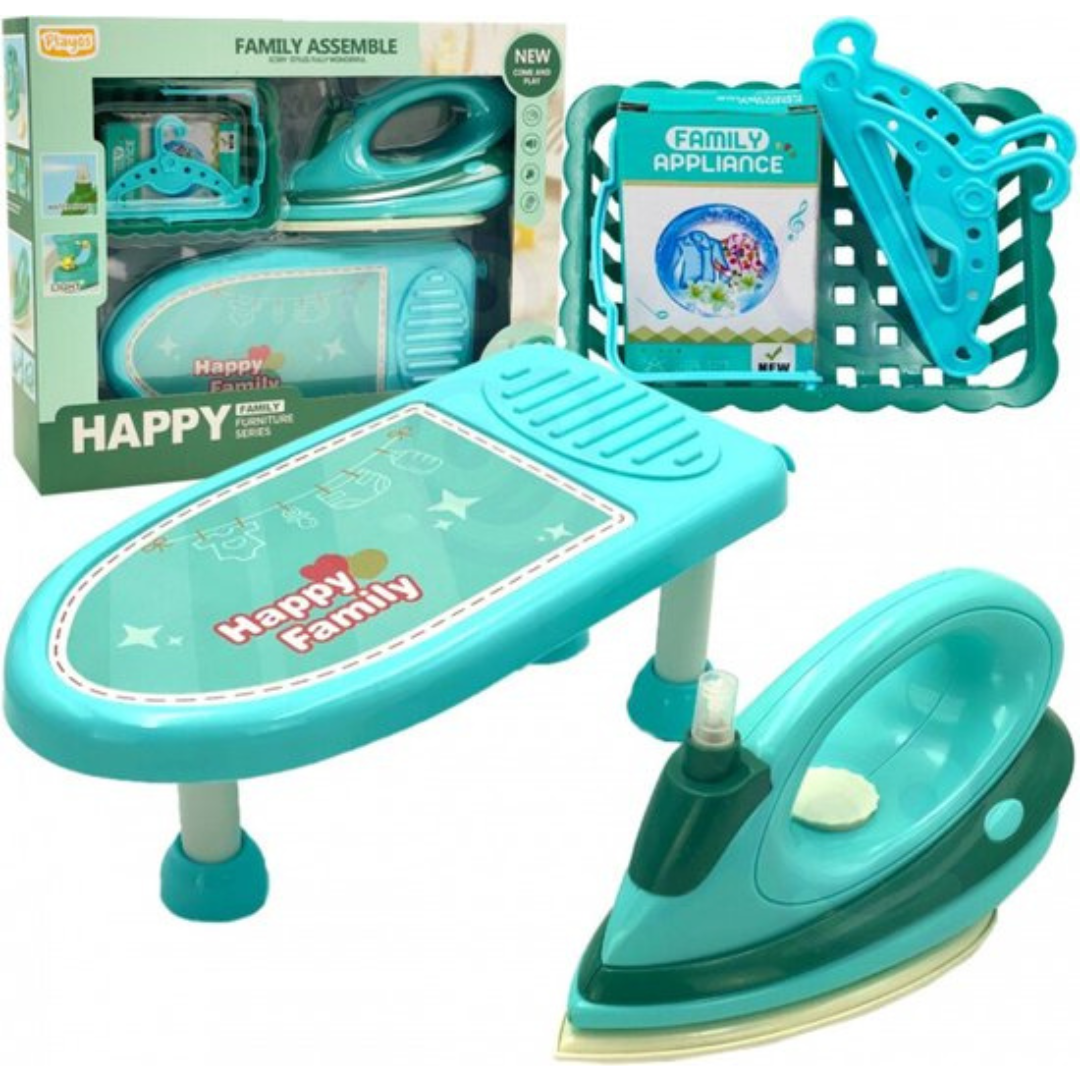 Het strijkijzer is veilig speelgoed voor kinderen, omdat het niet warm wordt. Het is uitgerust met vele functies die het speelplezier zullen vergroten: een gloeiende LED-lamp en geluidseffecten en trillingen die automatisch naar buiten komen wanneer de attributen op het oppervlak worden geplaatst. Het speelgoed kan gevuld worden met water, maar werkt ook zonder water te vullen. Dit is een perfecte set voor kinderen die graag hun ouders imiteren tijdens dagelijkse activiteiten.
