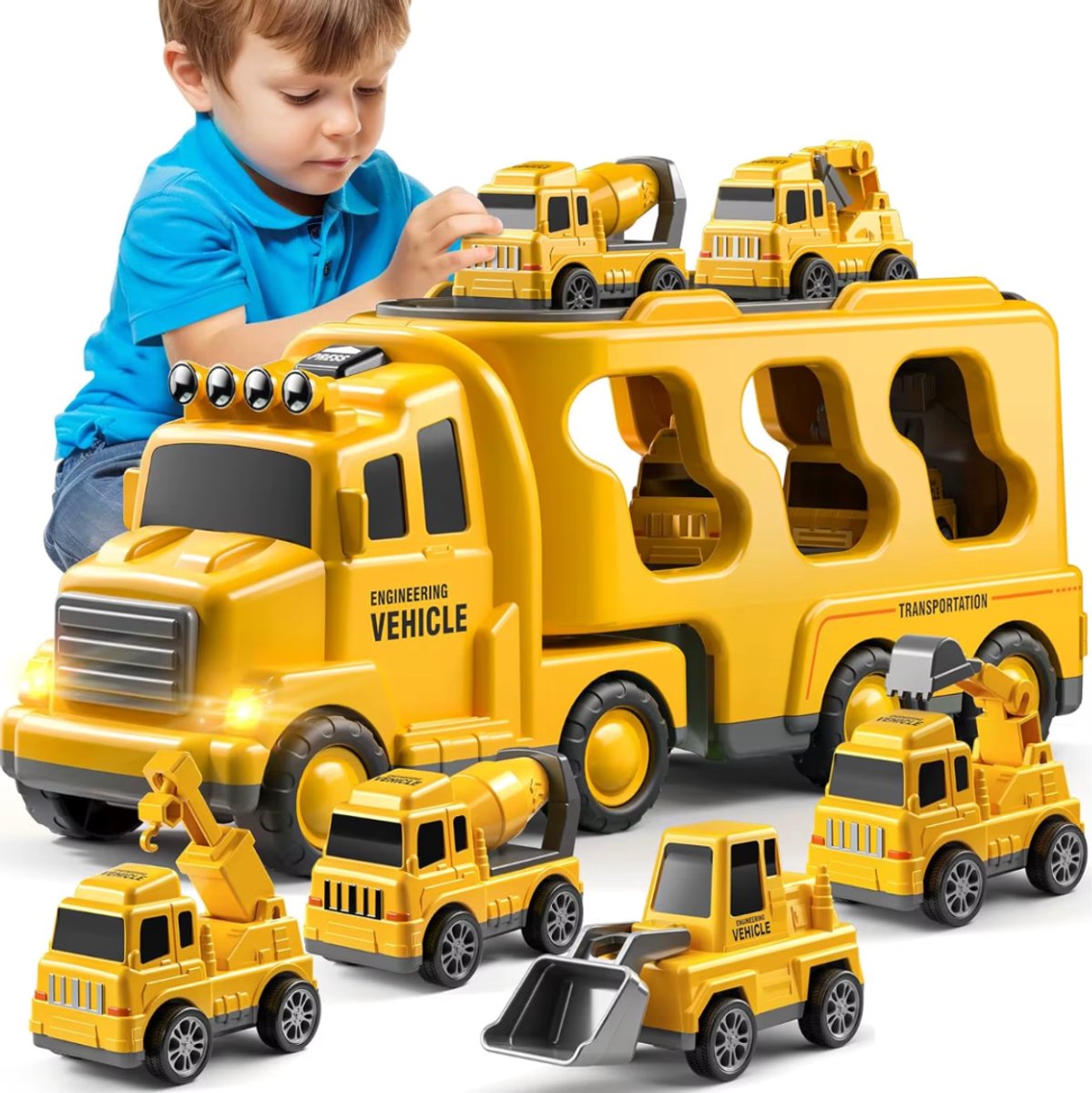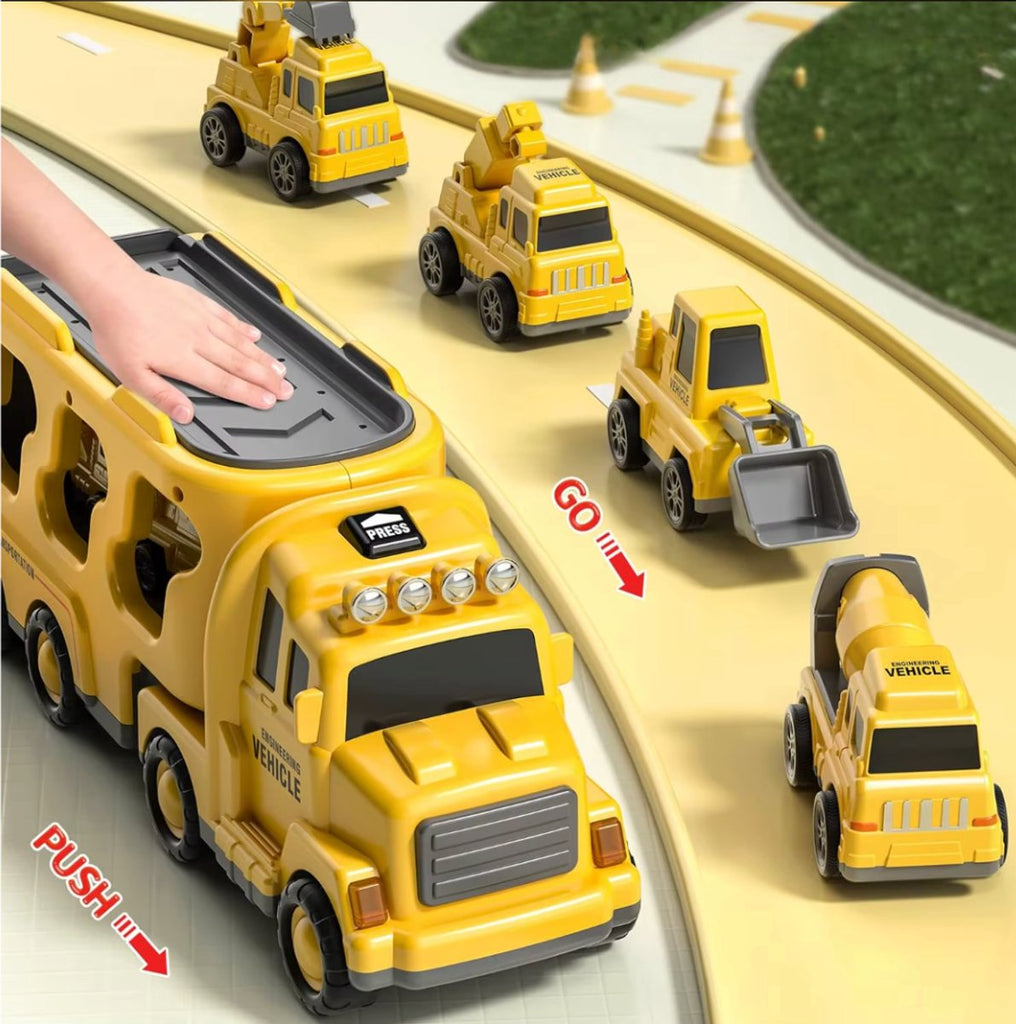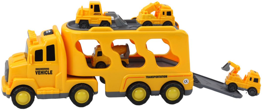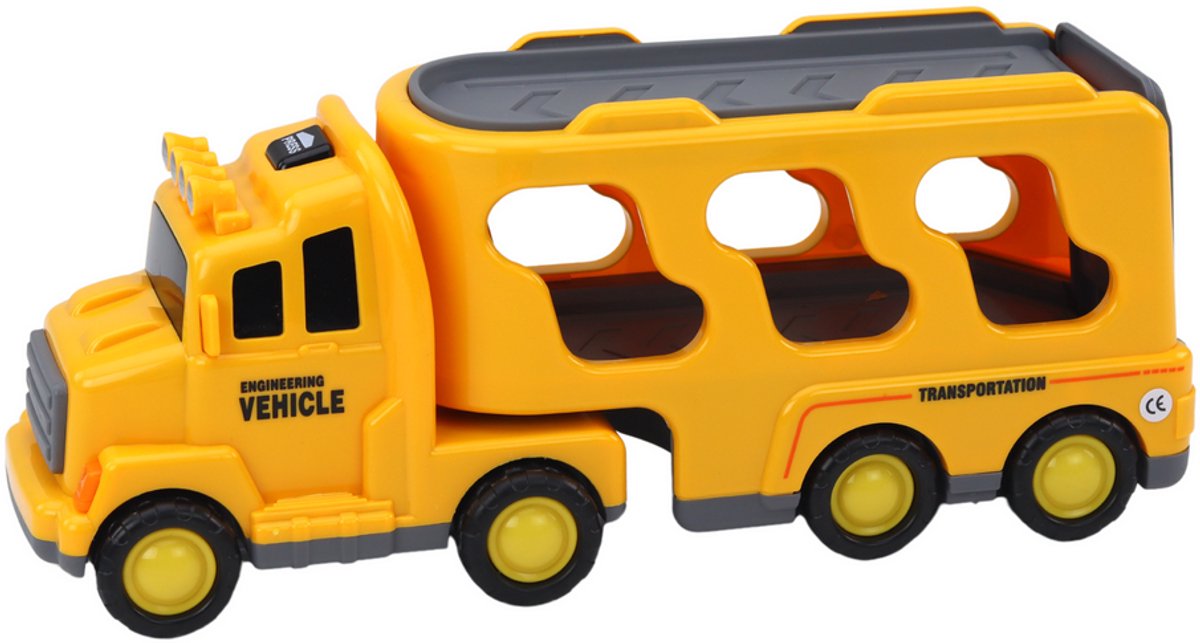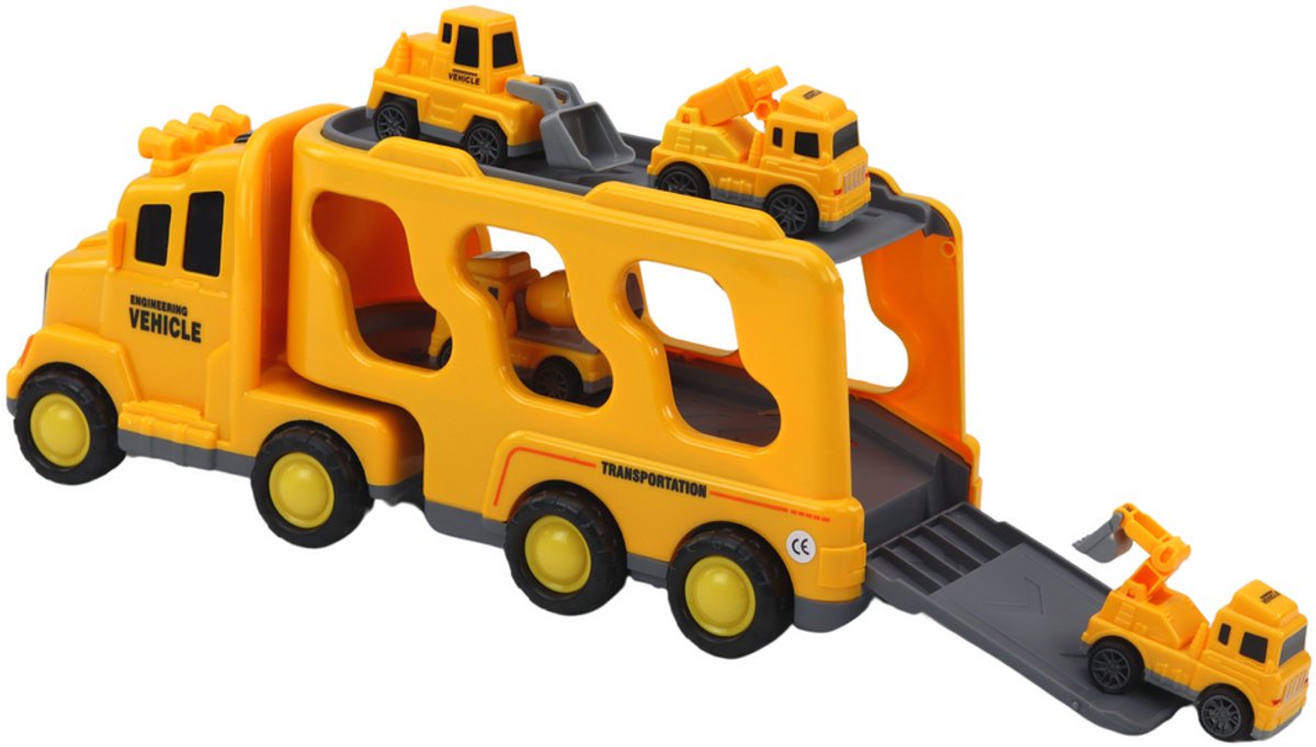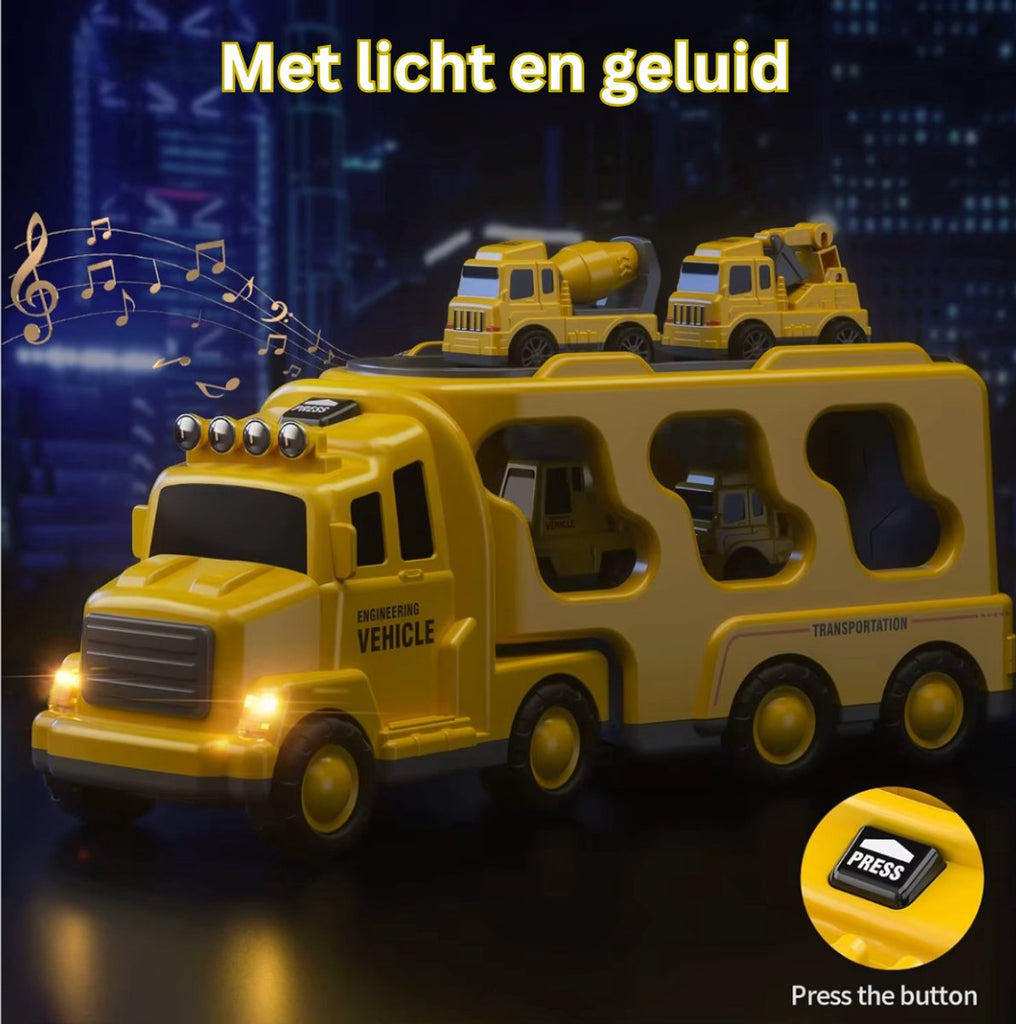 Ontdek de wereld van transport en constructie met de interactieve transporter truck. Deze kleurrijke gele takelwagen combineert speels plezier met creatief leren en is perfect voor jonge kinderen die houden van auto's, bouwvoertuigen en avontuur. De set bevat een grote, gedetailleerde transportwagen die niet alleen dient als transportmiddel, maar ook als opslagplaats voor kleinere voertuigen.