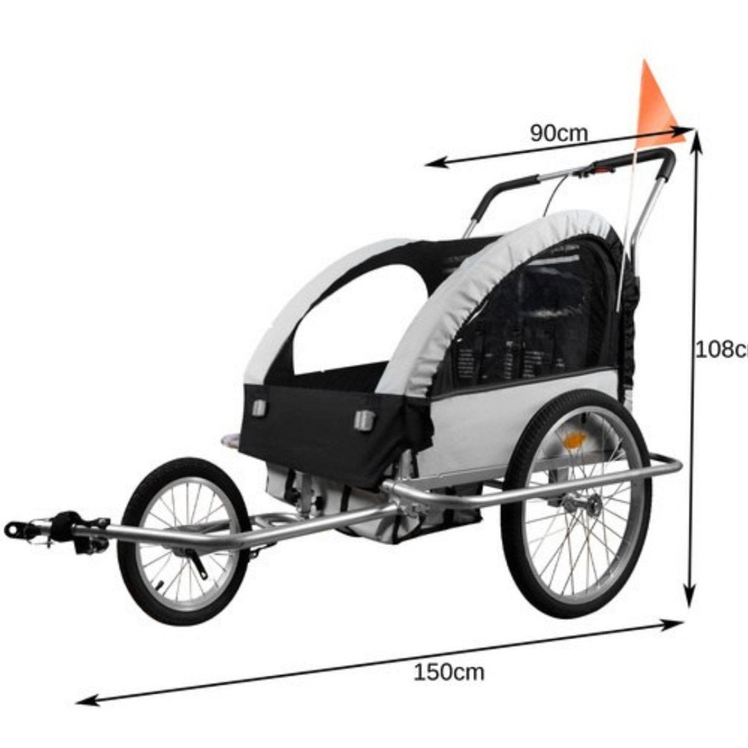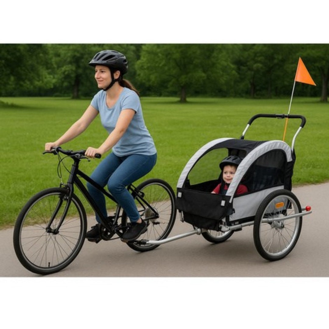3-in-1 – voor fietsen, hardlopen en wandelen – de 3-in-1 fietskar voor 2 personen fungeert als transportwagen, hardloopkinderwagen en fietskar, wat het een universele oplossing maakt voor gezinnen die een actieve levensstijl leiden.