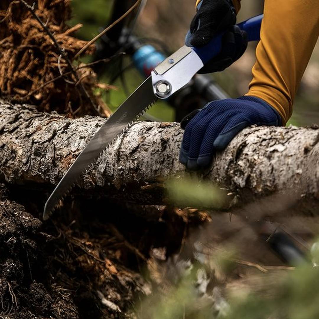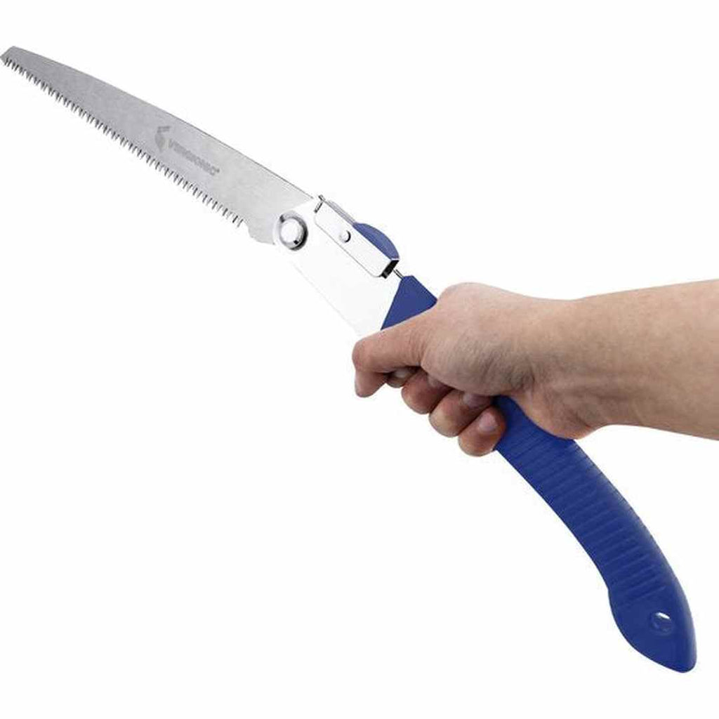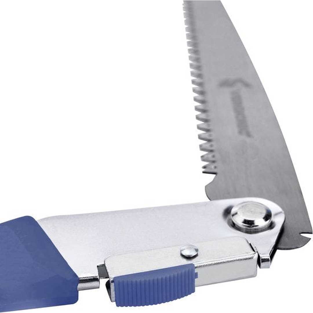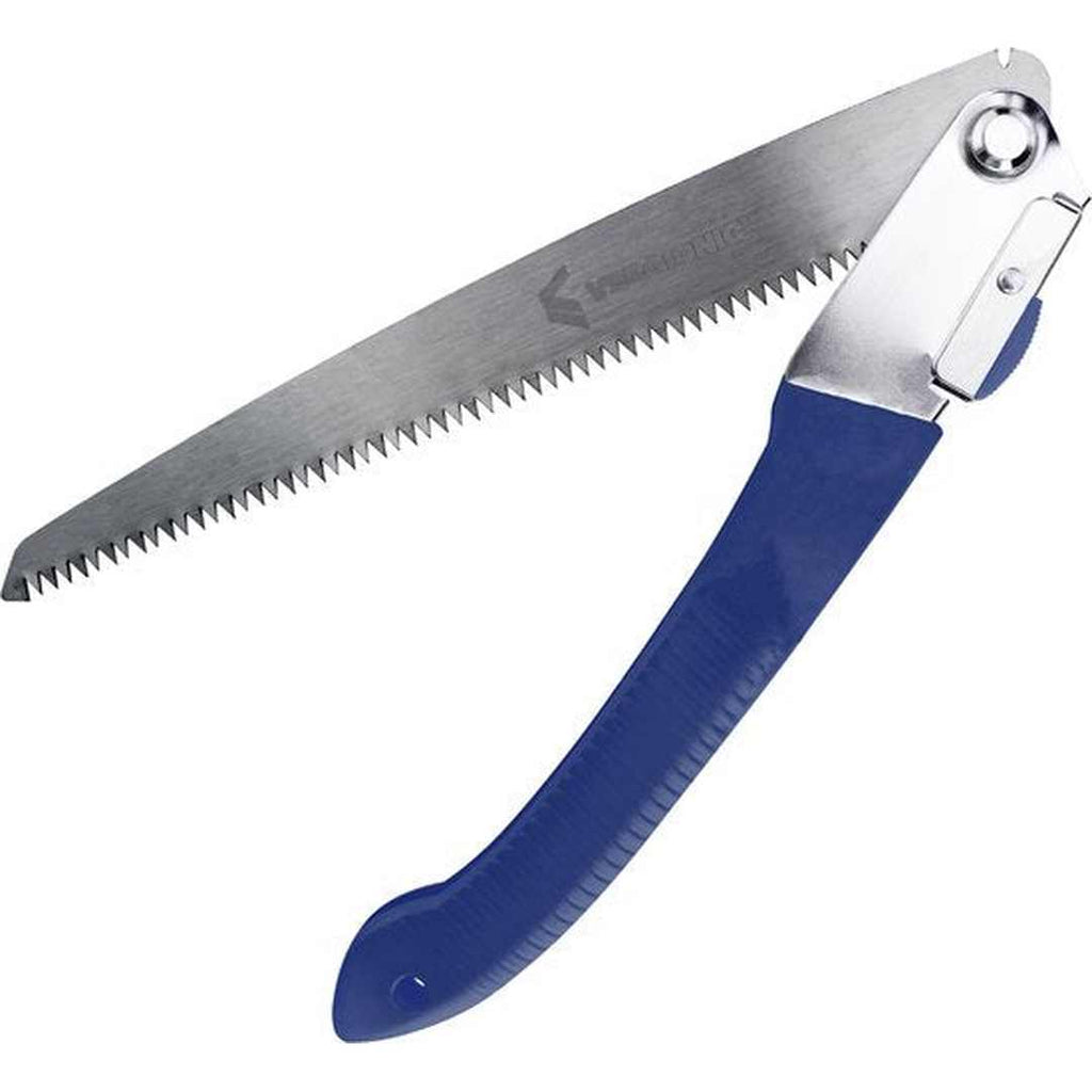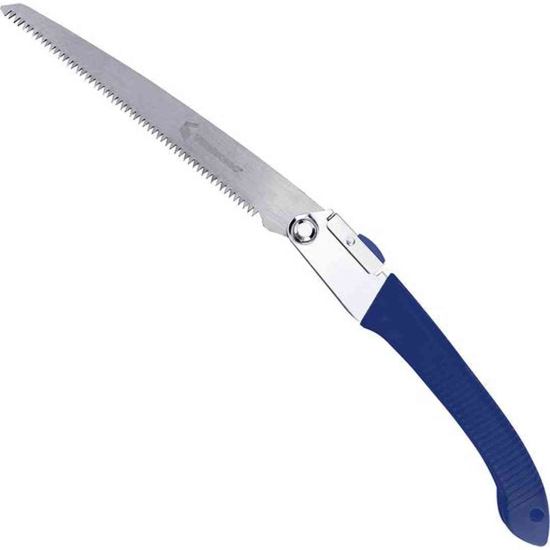 Zeker handig voor werk in een achtertuin of boomgaard, in een werkplaats of op een bouwplaats. De zaag heeft een inklapbaar ontwerp - het stalen blad van de zaag kan volledig worden verborgen.