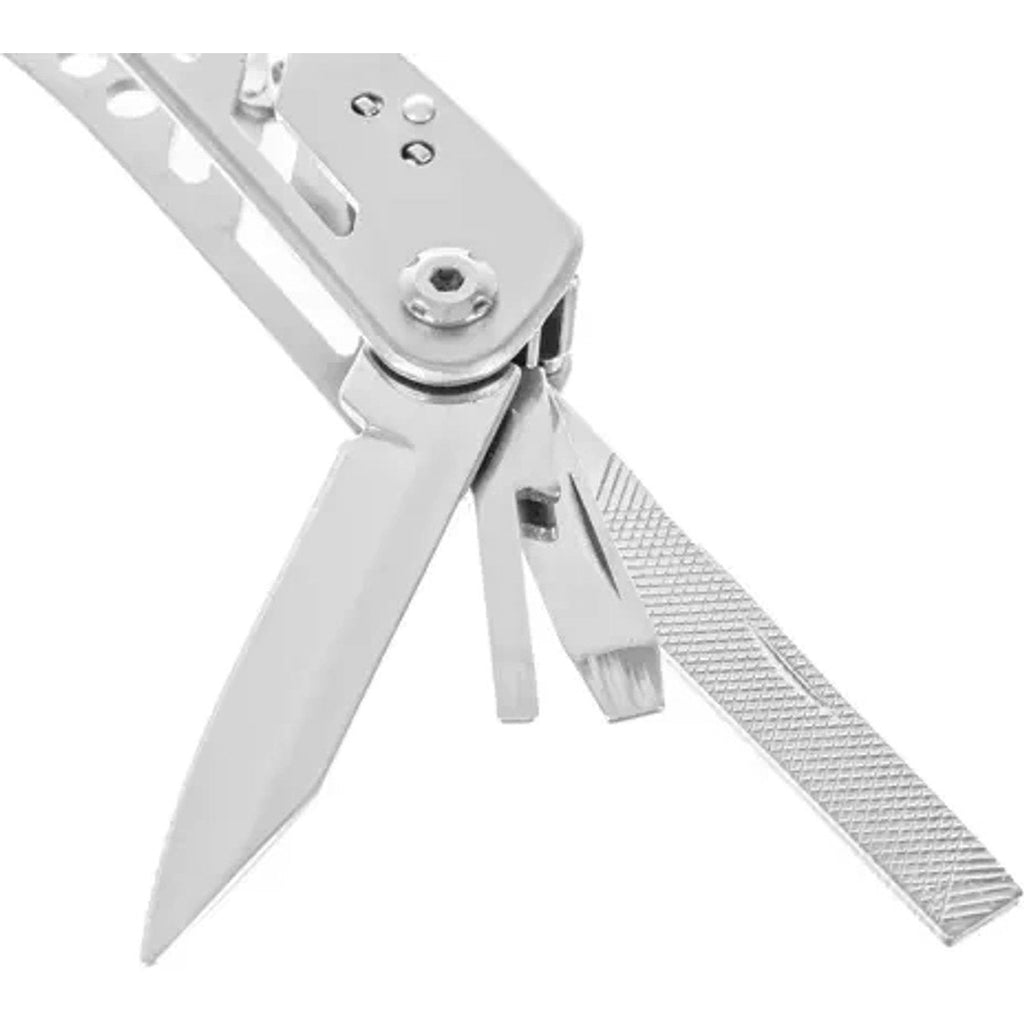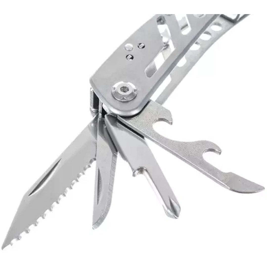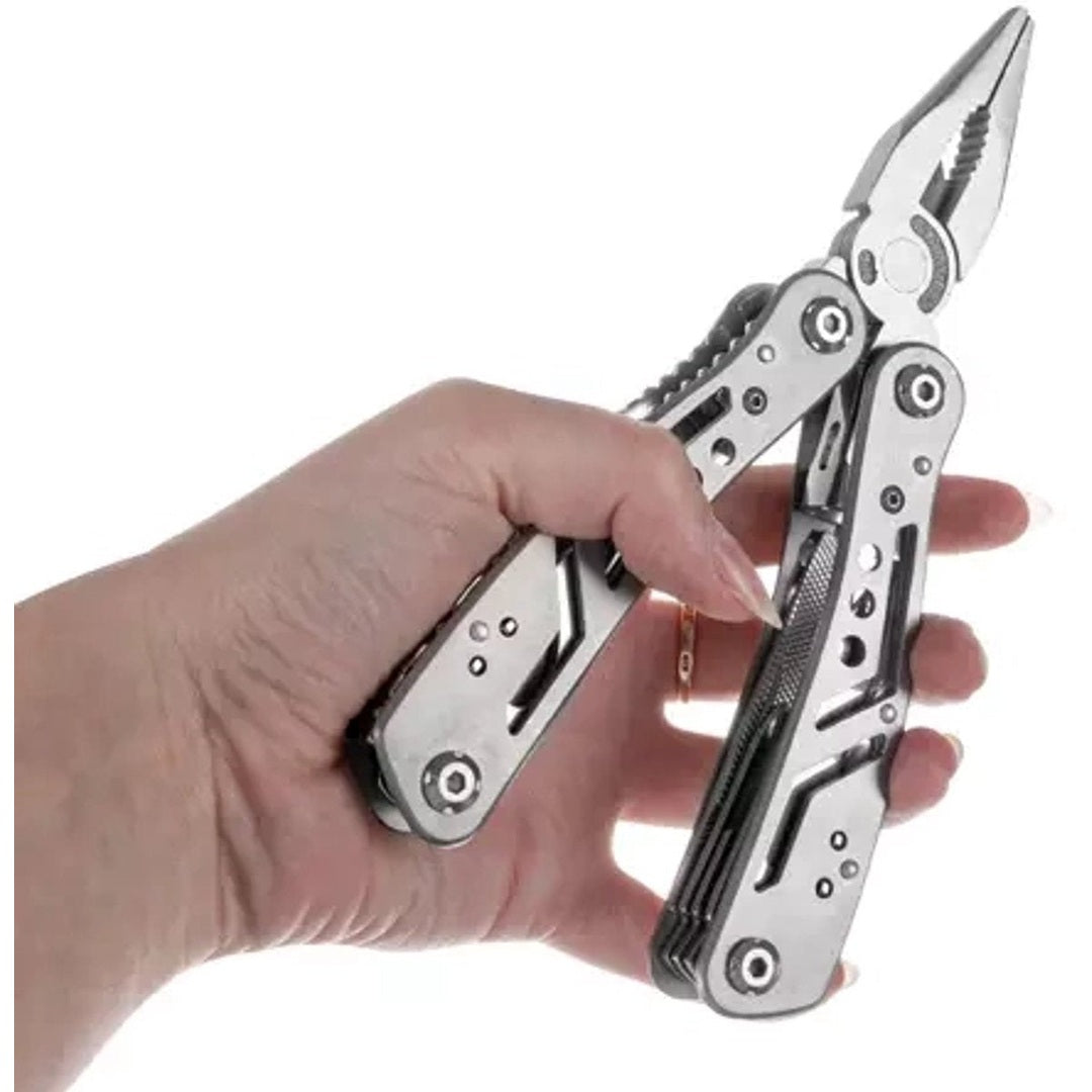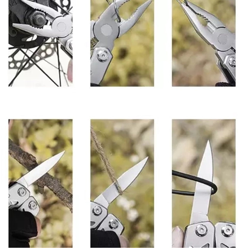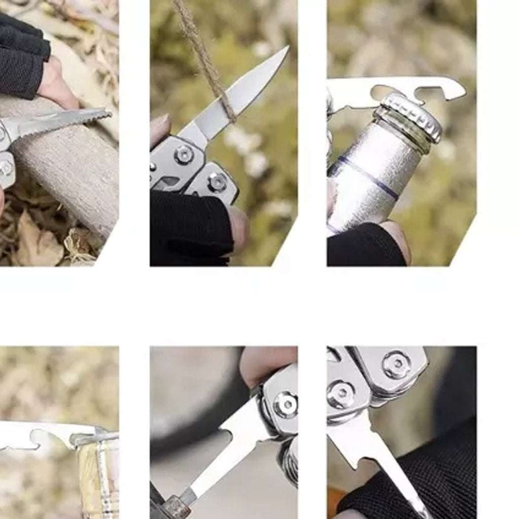 13 in 1 - het product heeft maar liefst 13 verschillende ingebouwde gereedschappen die je kunnen helpen tijdens het overleven, vissen, wandelen, kamperen, in tenten, op het werk of gewoon tijdens het tuinieren. De multitool wordt geleverd met een mes, zaagblad, tang, flesopener, blikopener, schroevendraaier, zakmes, tang, kniptang en meer.