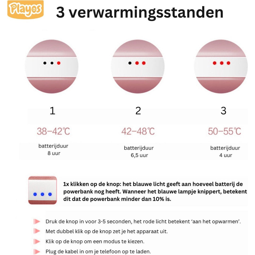 Last van koude handen? Dan is deze 2-in-1 handwarmer én powerbank ideaal voor jou! Terwijl je je mobiel, earpods of iets anders oplaadt, kun je je handen opwarmen aan deze oplaadbare handwarmer.