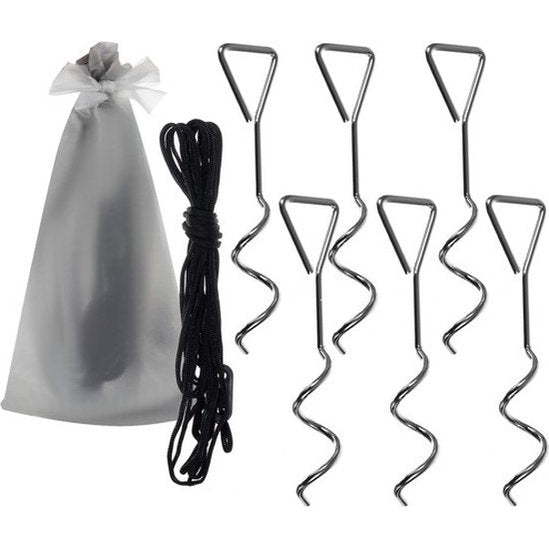 Complete set - de set maakt het gemakkelijker om de tent in elkaar te zetten en de speciaal ontworpen haringen houden hem op de grond, zelfs bij harde wind. Alles zit in een speciale hoes. Bovendien bevat de set ook een hoes met een koord en een handvat, waarmee je de opgevouwen tent gemakkelijk kunt vastzetten en vervoeren.