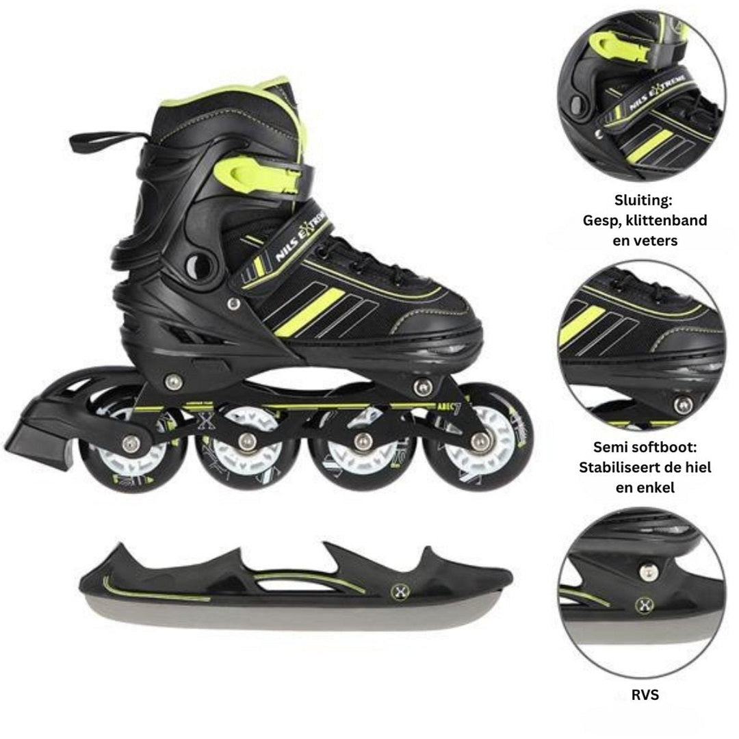 Het hele jaar door plezier met deze 2-in-1 Schaatsen & Skeelers combo!