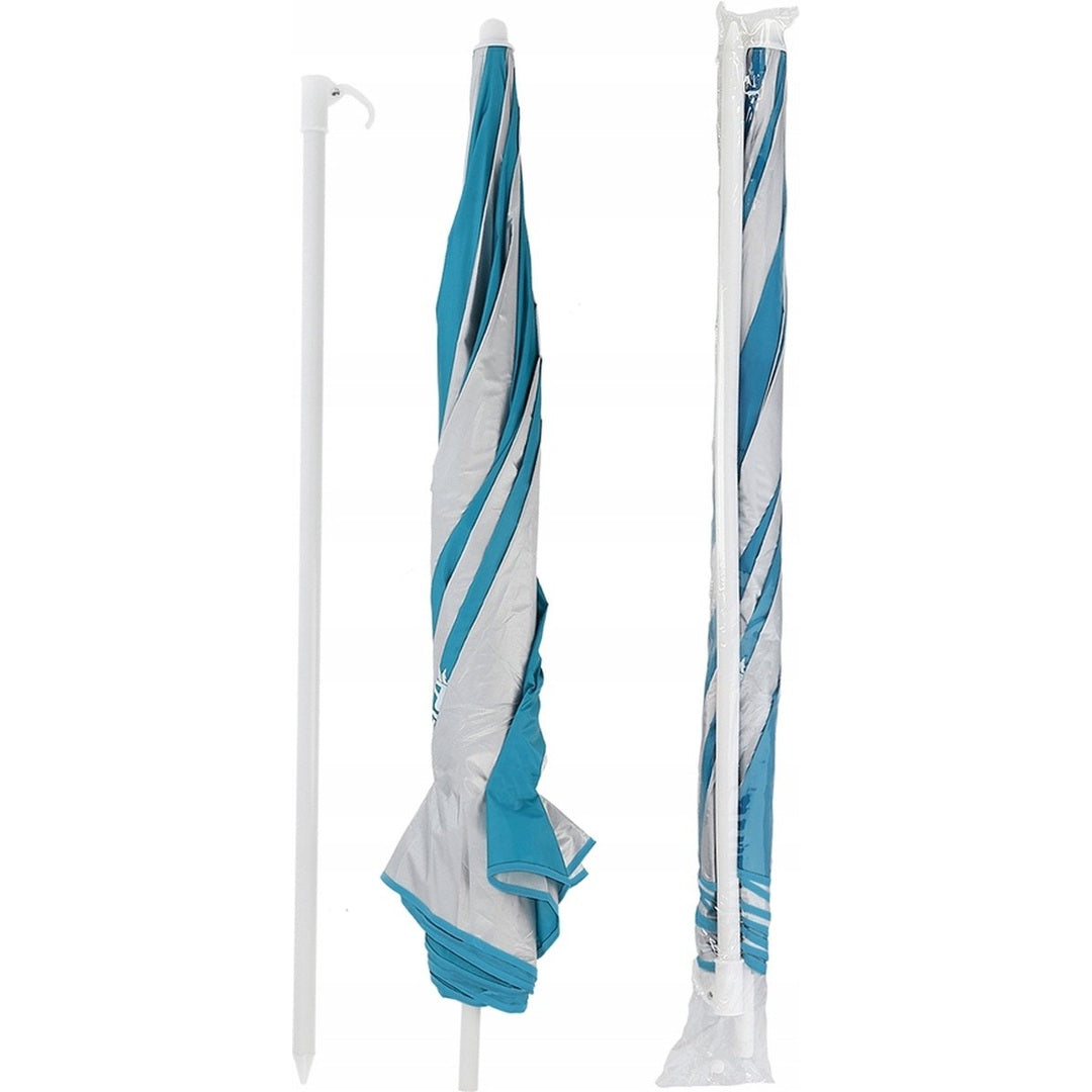 De set bestaat uit: Nieuwe, originele strandparasol in opberghoes