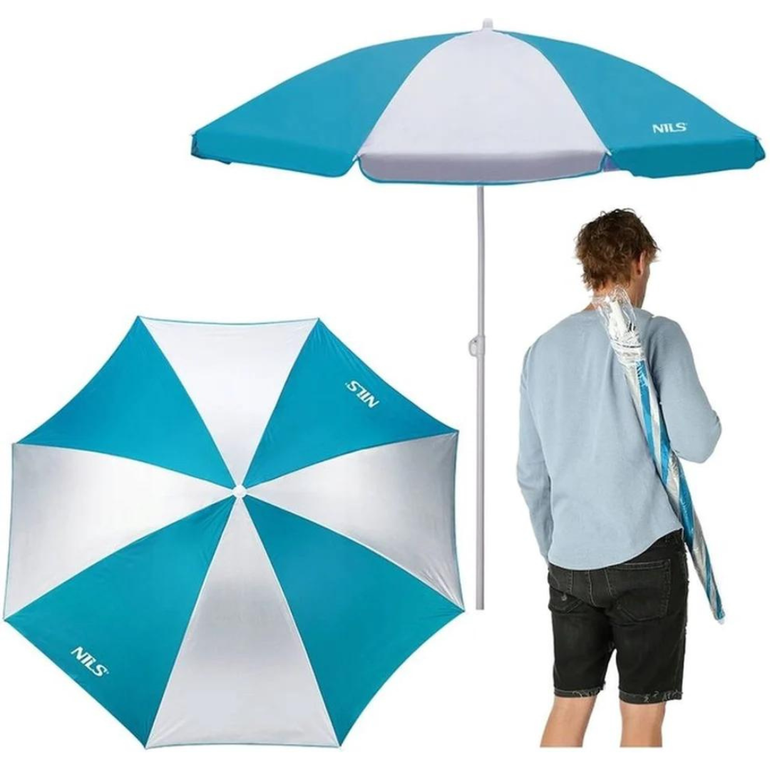 Heerlijk op het strand liggen, zonder dat je last hebt van teveel zon? Dan is deze verstelbare en kantelbare parasol de ideale oplossing! Met SPF 40+ beschermt hij je tegen de zon. Je neemt hem gemakkelijk mee in de bijgeleverde draagtas.