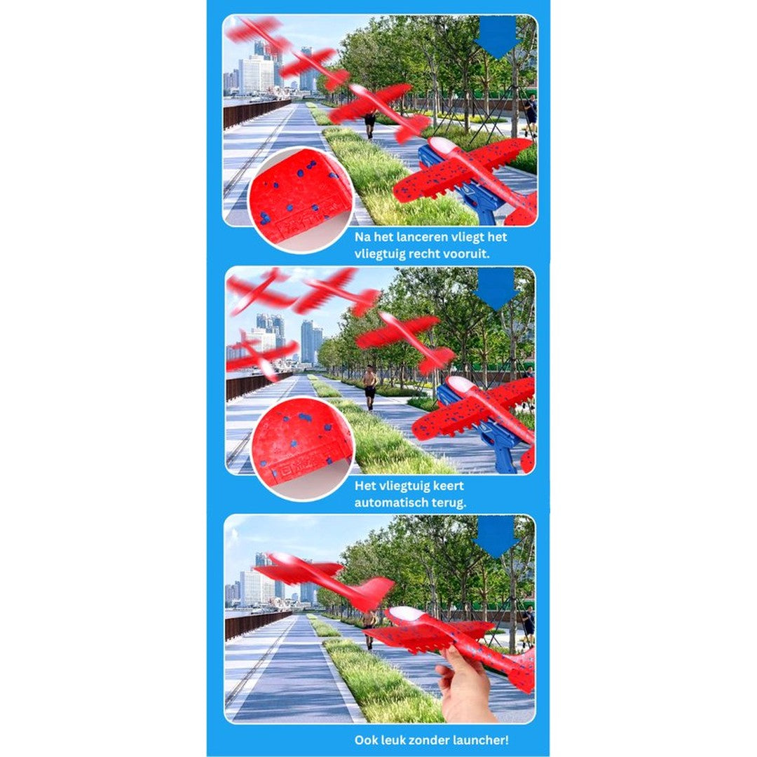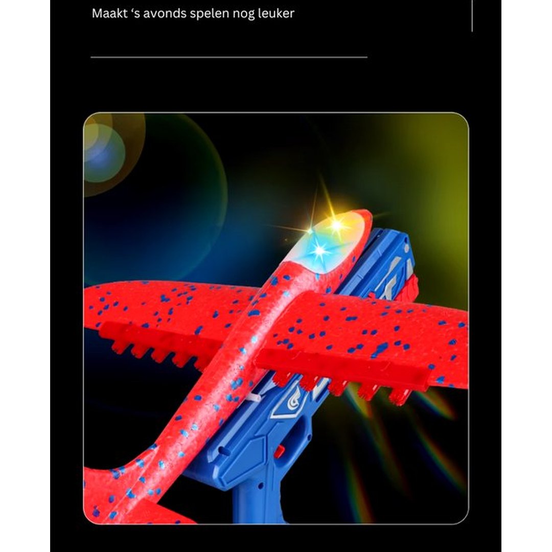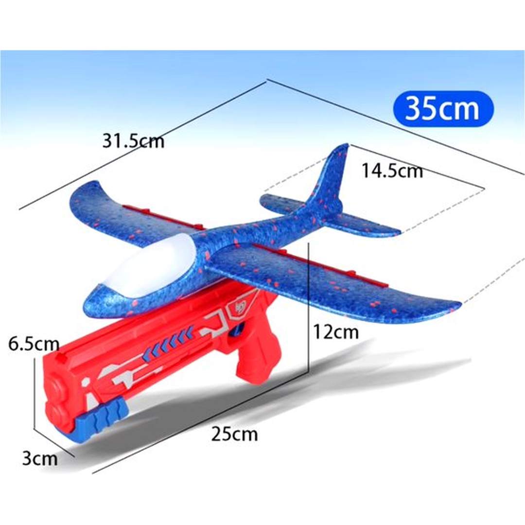 Een licht, aerodynamisch gevormd vliegtuig van piepschuim dat in gunstige omstandigheden (voldoende wind) echt lange vluchten garandeert. Levendige, intense kleuren maken het vliegtuig echt aantrekkelijk. Het pistool is helemaal gemaakt van licht plastic en is perfect voor elk schietspel.
