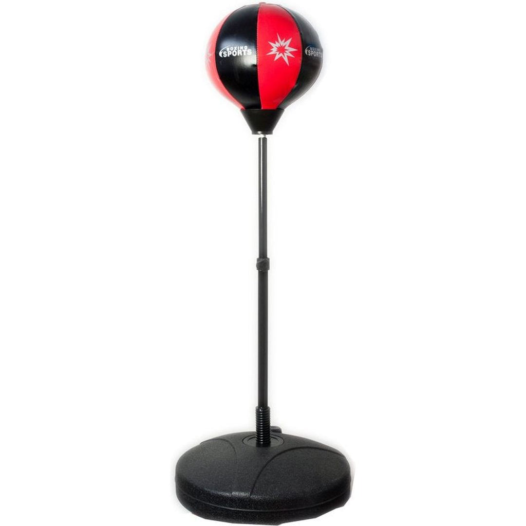 De bokszak is bevestigd op een metalen telescopische paal die verstelbaar is van 90-124 cm in hoogte.