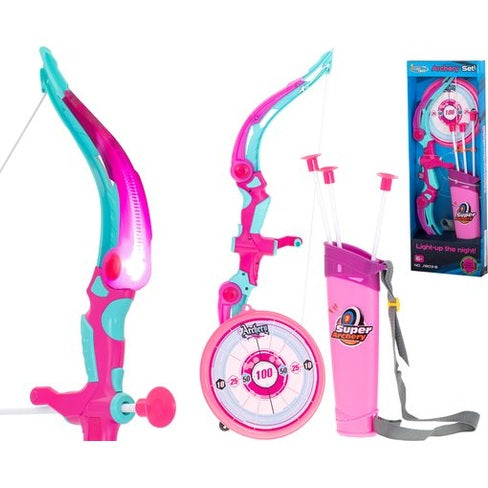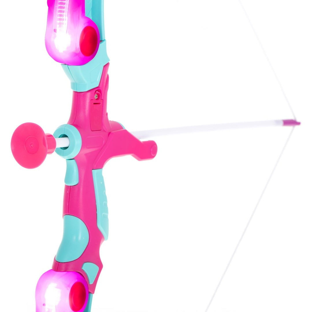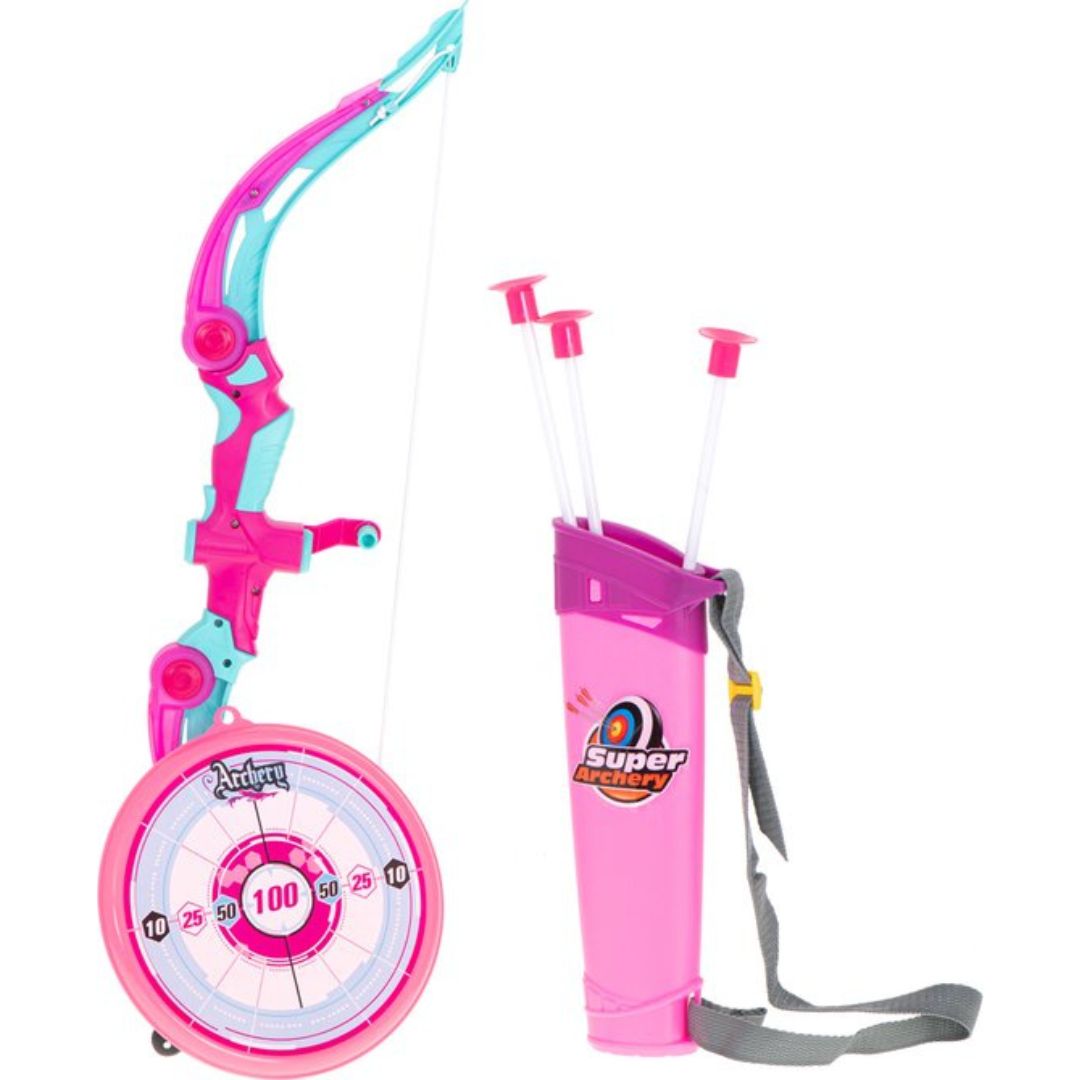 De speelgoedboog is het perfecte vermaak voor kinderen die ervan dromen om de rol van boogschutter te spelen. De boog is bespannen met rubber en elke pijl is afgewerkt met een rubberen punt. Een uniek design en kleuren maken het leuk voor elk kind.