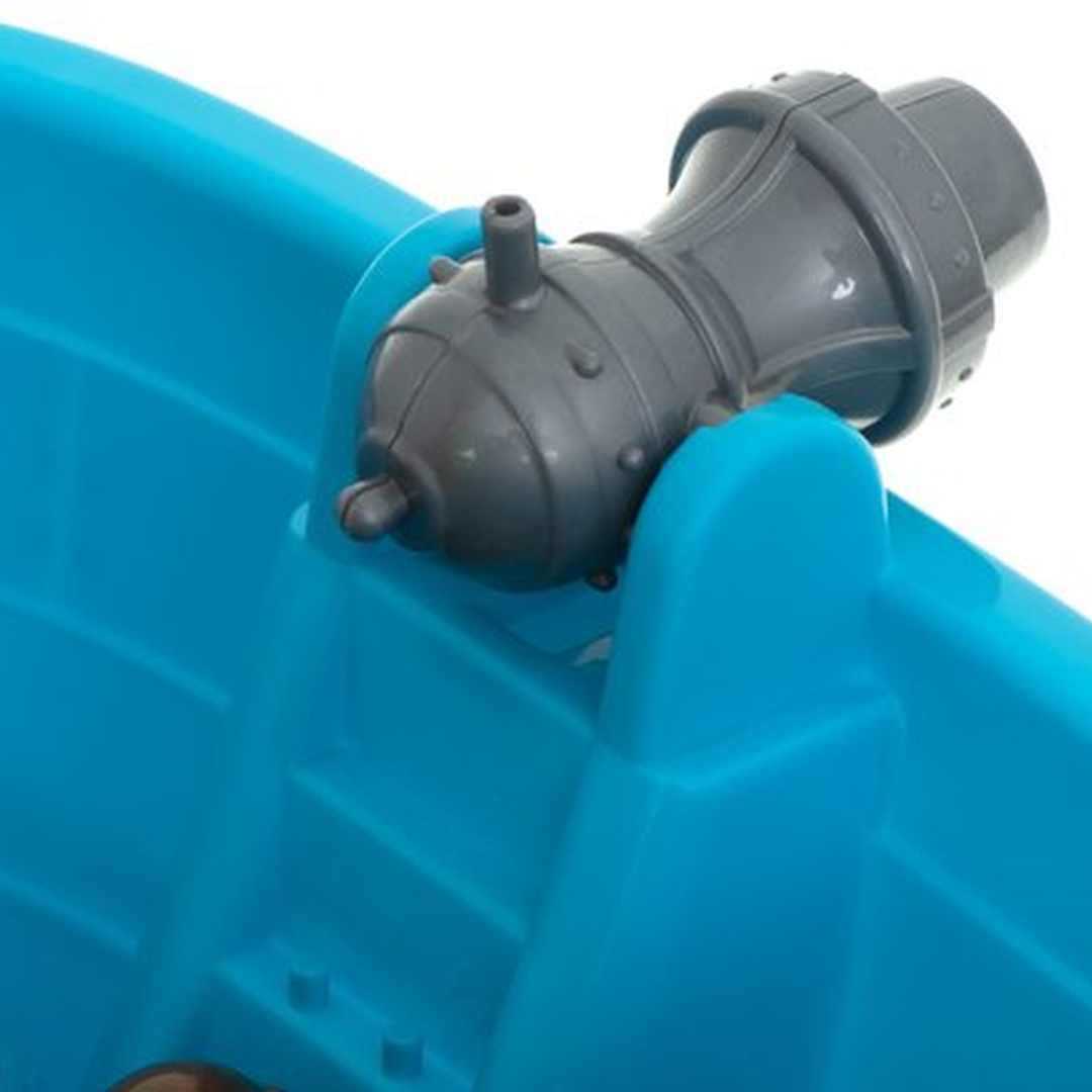 Spetter naar hartenlust! Giet water in het ooievaarsnest en zie hoe de fontein twee molens aandrijft.