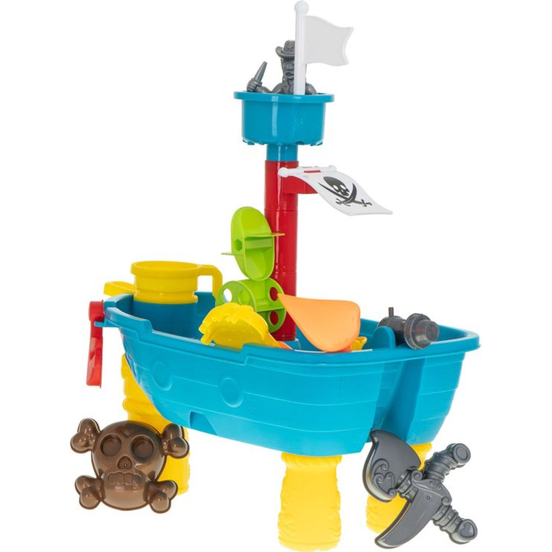 Ga op een reis vol plezier. De piratenboot zal je peuter veel opwinding bezorgen. De kleurrijke zandbak in de vorm van een schip kan worden gevuld met water, zand of magisch zand (in dit geval werkt het ook goed binnenshuis). Bouw verbazingwekkende zandconstructies met de bijgeleverde mallen, beker, spatel en hark.