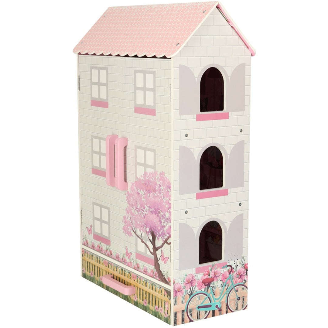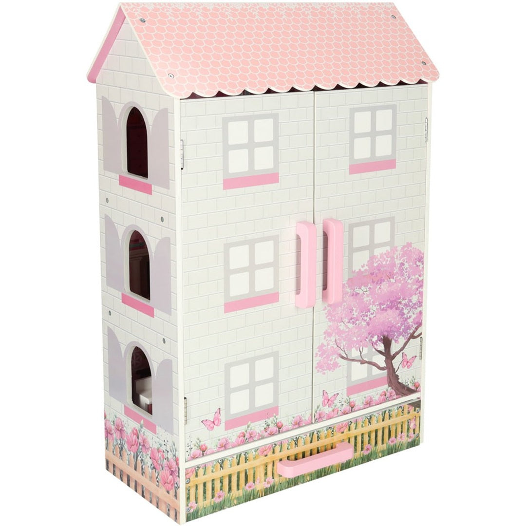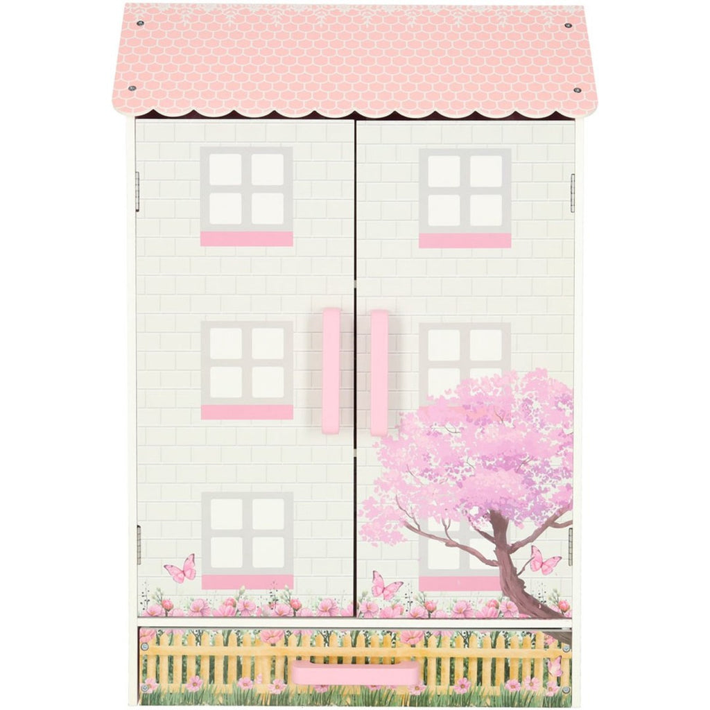 De set wordt geleverd inclusief een selectie van meubeltjes, zoals een keuken, lamp, wieg, twee stoelen, tafel, toilet, kast en ladekast. Het huis heeft een afsluitbare deur met magneetsluiting, zodat kinderen hun speelwereld kunnen afsluiten en het huis ook als mooie decoratie in de kinderkamer kunnen gebruiken.