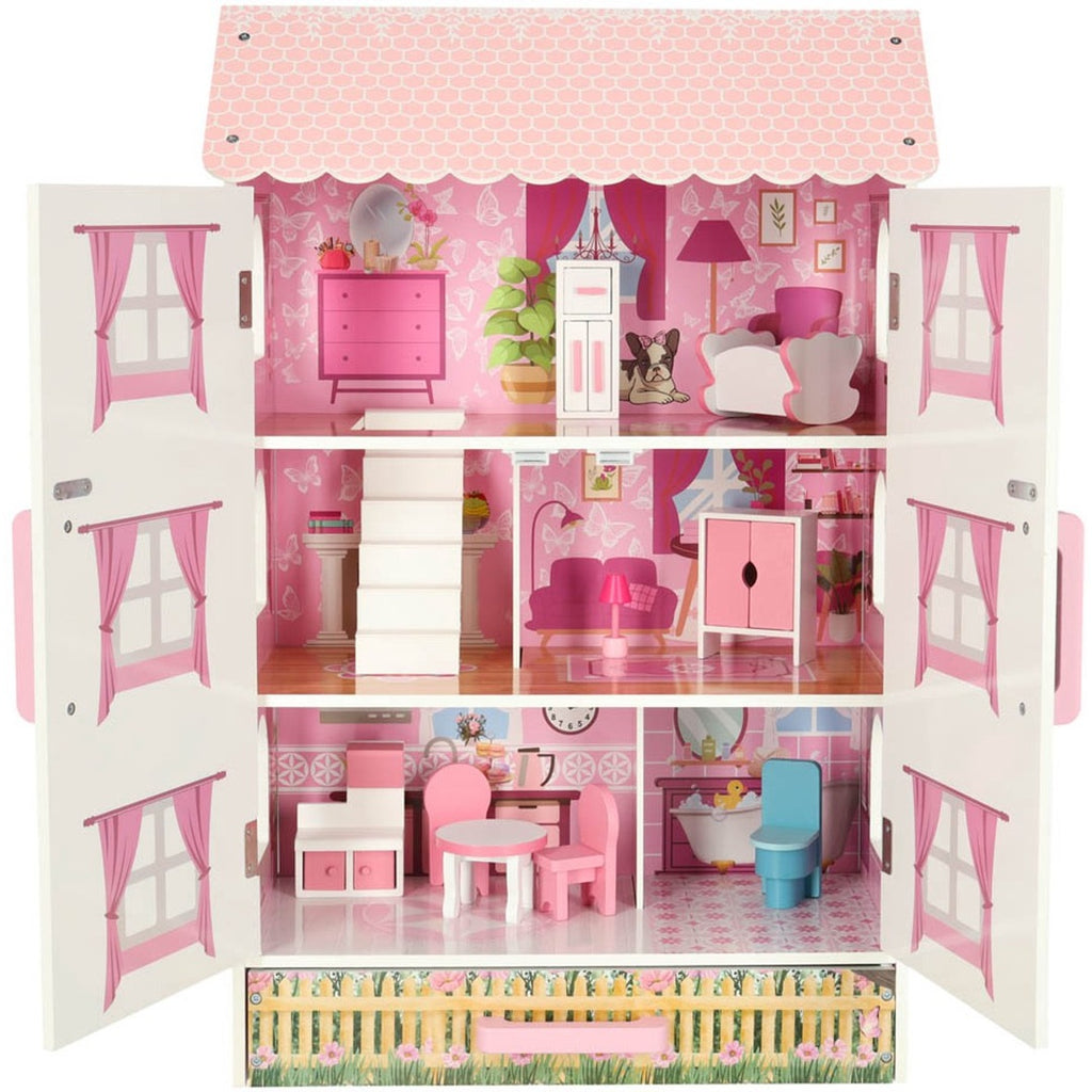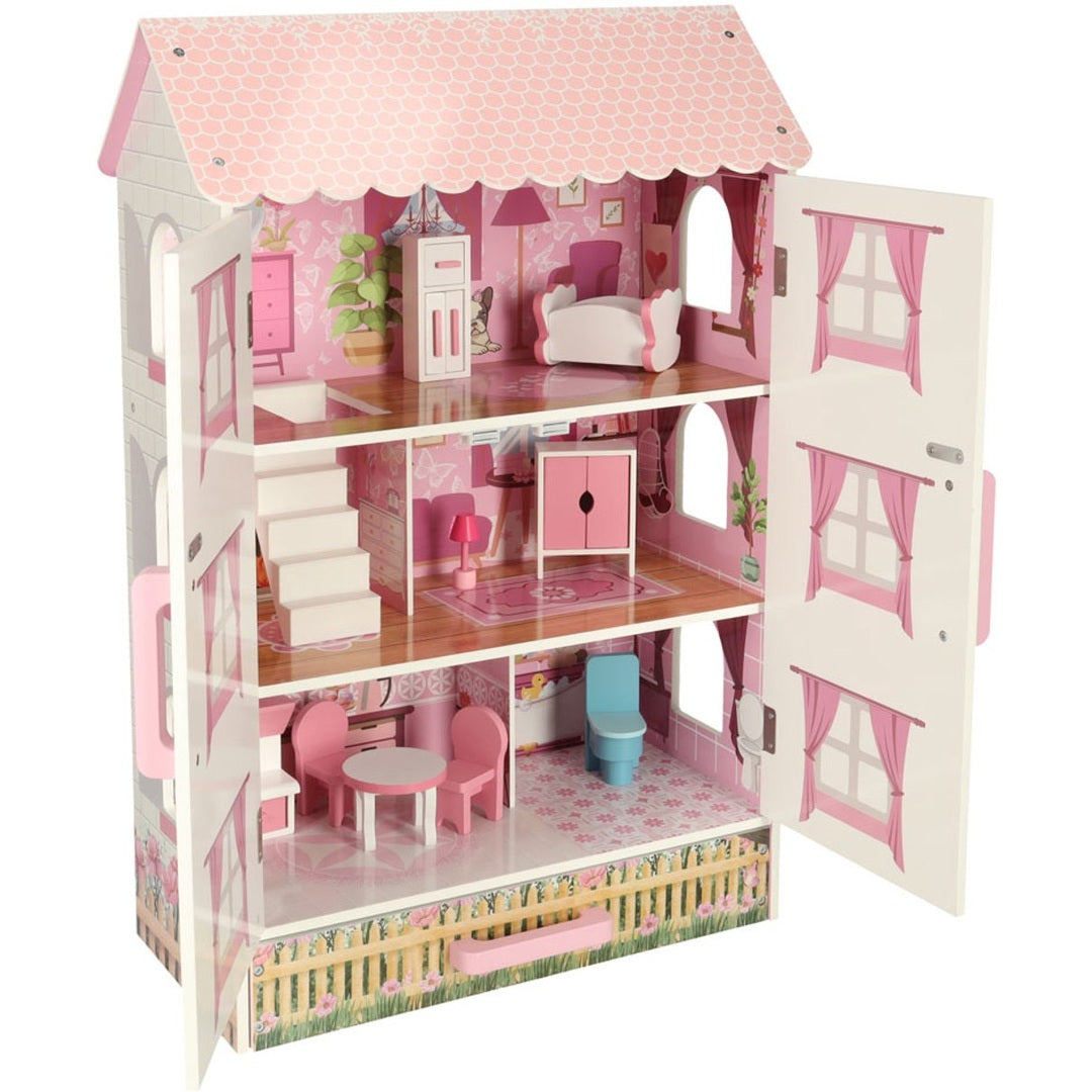 Maak de speelwereld van je kleintje compleet met dit prachtige poppenhuis (50 x 24 x 80 cm). Dit ruime en stijlvolle huis is perfect voor elke kleine poppenliefhebber en geeft hun collectie een eigen villa om te verkennen en te verzorgen.