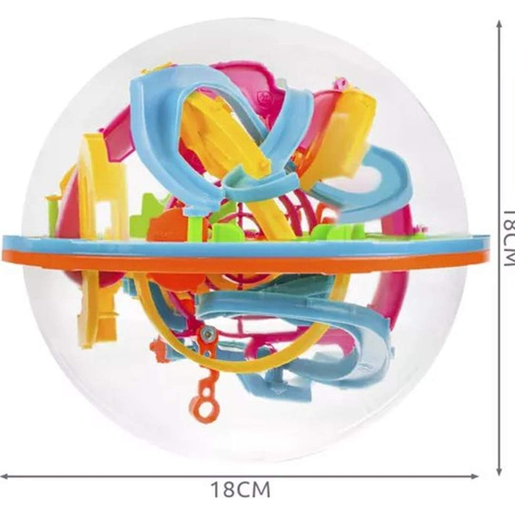 Een doorzichtige bal met daarin een kleurrijk doolhof met veel verschillende soorten hindernissen is uniek speelgoed voor kinderen. Binnenin zit een kleine zilveren bal. Het spel bestaat uit het bereiken van het doel door de bal nauwkeurig te bewegen en een doolhof met veel bochten, tunnels en uitgangen te overwinnen. De route verrast met doodlopende wegen, kruisende lussen, dips, fouten... allemaal in 3D! In totaal zijn er maar liefst 138 obstakels om te overwinnen. Door het pad van de bal te controleren, oefent de speler zijn of haar coördinatie en vergroot hij of zij het concentratievermogen, en zoals we weten is het vermogen om je op een taak te concentreren uiterst nuttig op school en daarbuiten. Daarnaast kunnen ruimtelijk geordende routes de perceptie van ruimte en richting van de speler verbeteren. De bal door gangen vol vallen leiden is gewoon fantastisch, boeiend en spannend.