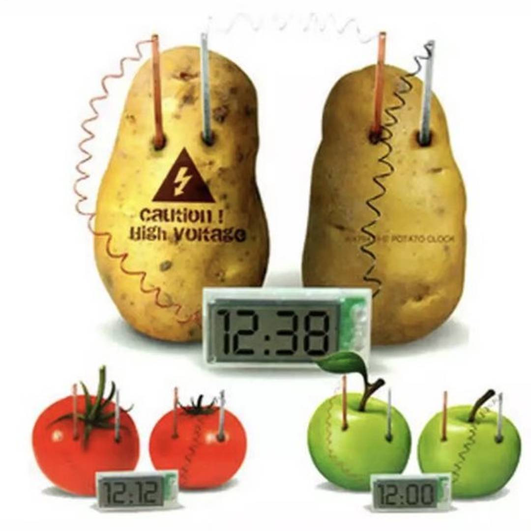 Een klok die zonder batterijen werkt? Dankzij de eigenschappen van aardappelen en andere producten zoals citroenen kun je dit voor elkaar krijgen. Met deze kit kun je een digitale klok maken die gebruik maakt van natuurlijke energiebronnen. Dit is een geweldige kans om te begrijpen hoe elektriciteit op een milieuvriendelijke manier kan worden opgewekt.