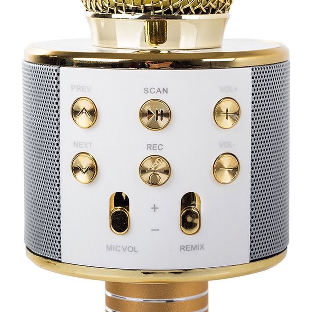 De draadloze microfoon is licht en handig, zodat je je vrij kunt bewegen tijdens het zingen. De microfoon kan met de telefoon verbonden worden via het bluetooth systeem (of bijvoorbeeld via de meegeleverde USB - MicroUSB kabel), dus hij kan ook gebruikt worden als mp3 speler.